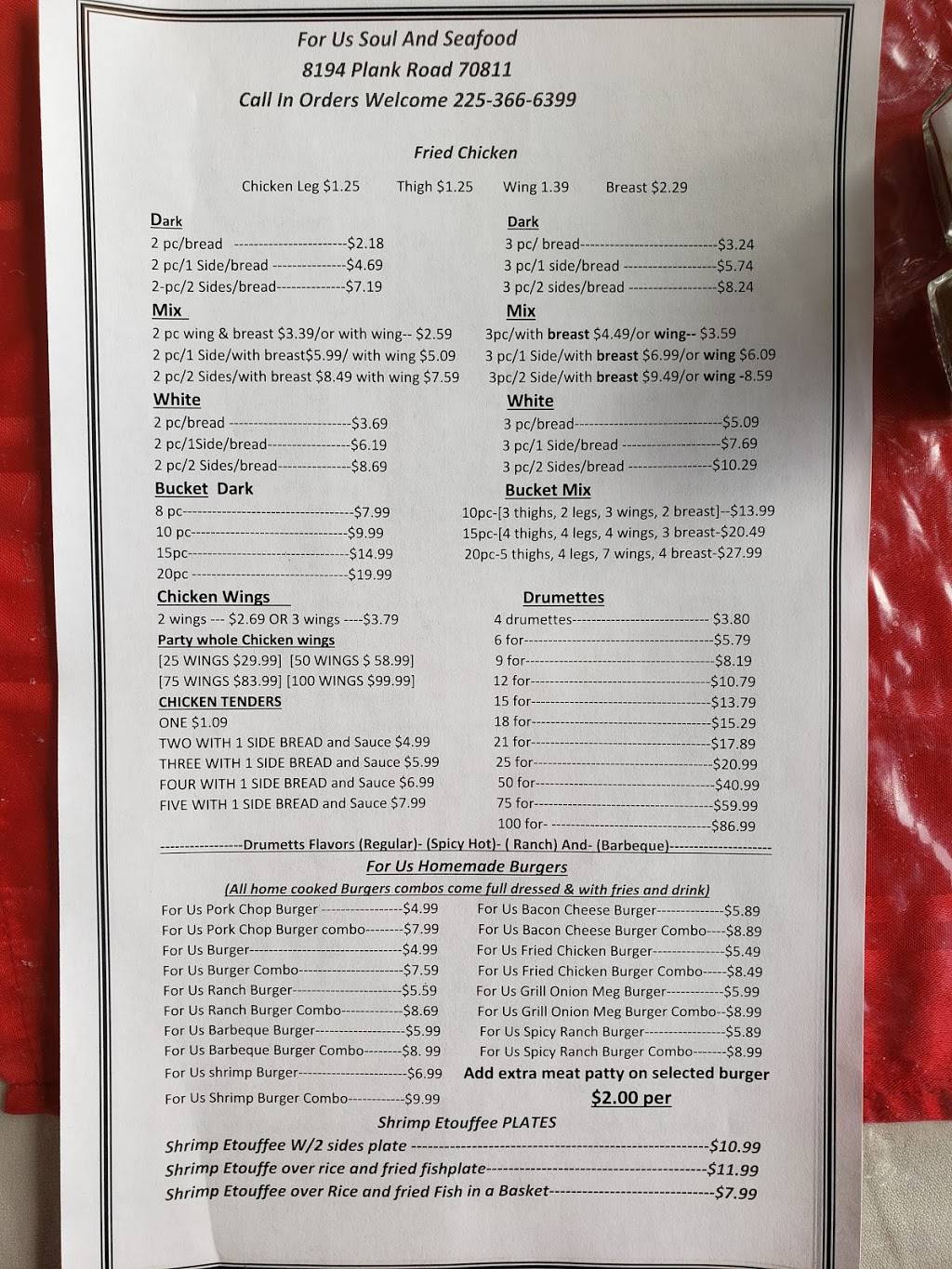 | Website: | https://for-us-soul-and-seafood.business.site/ |