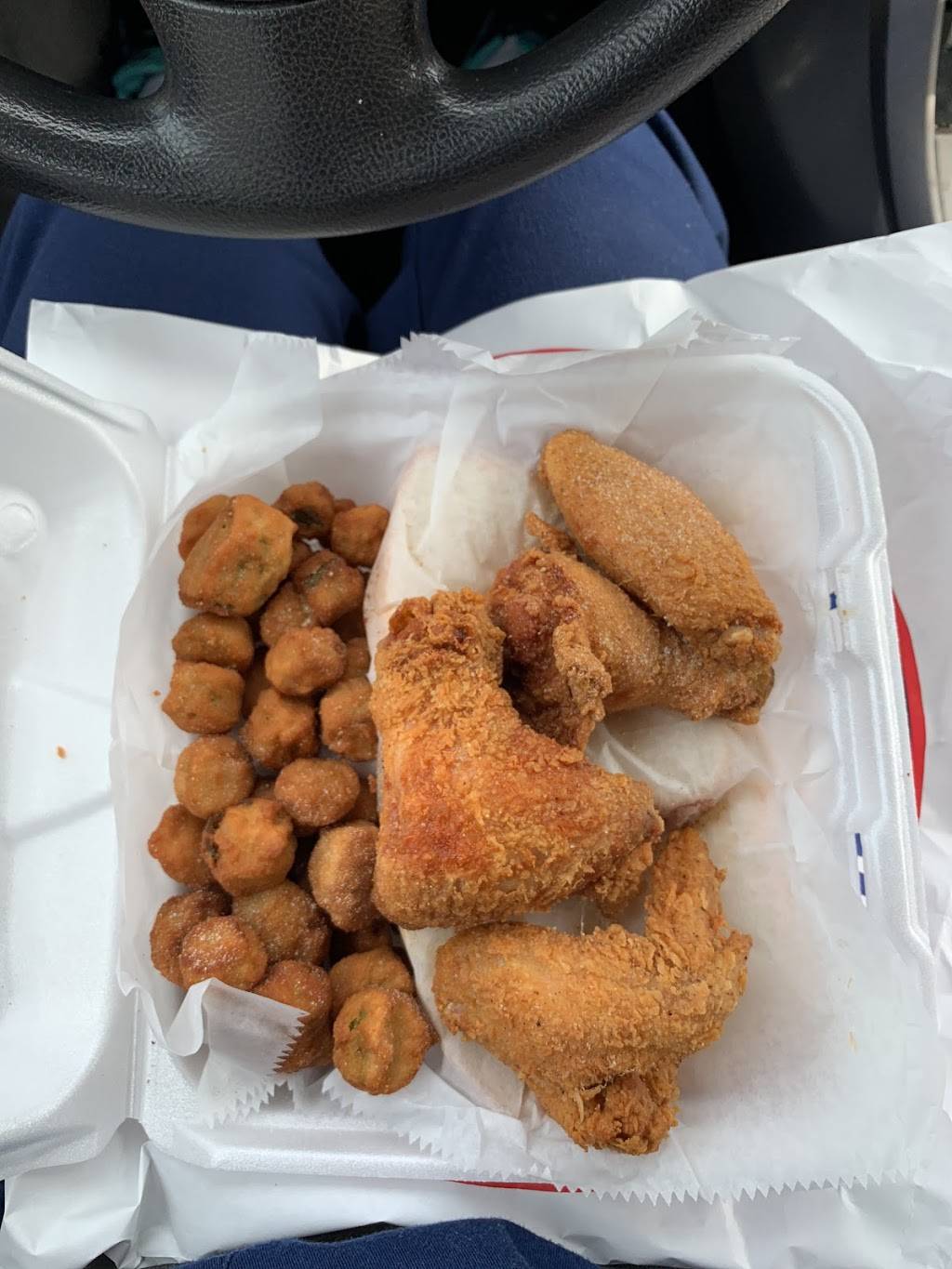 Order #3 snapper with oysters and sides, alway freshly cooked I also like the season blend they add to your food, ask for extra seasoning. They wing deals are a good value also thanks. The window customers service was good too she helped me order what I wanted.