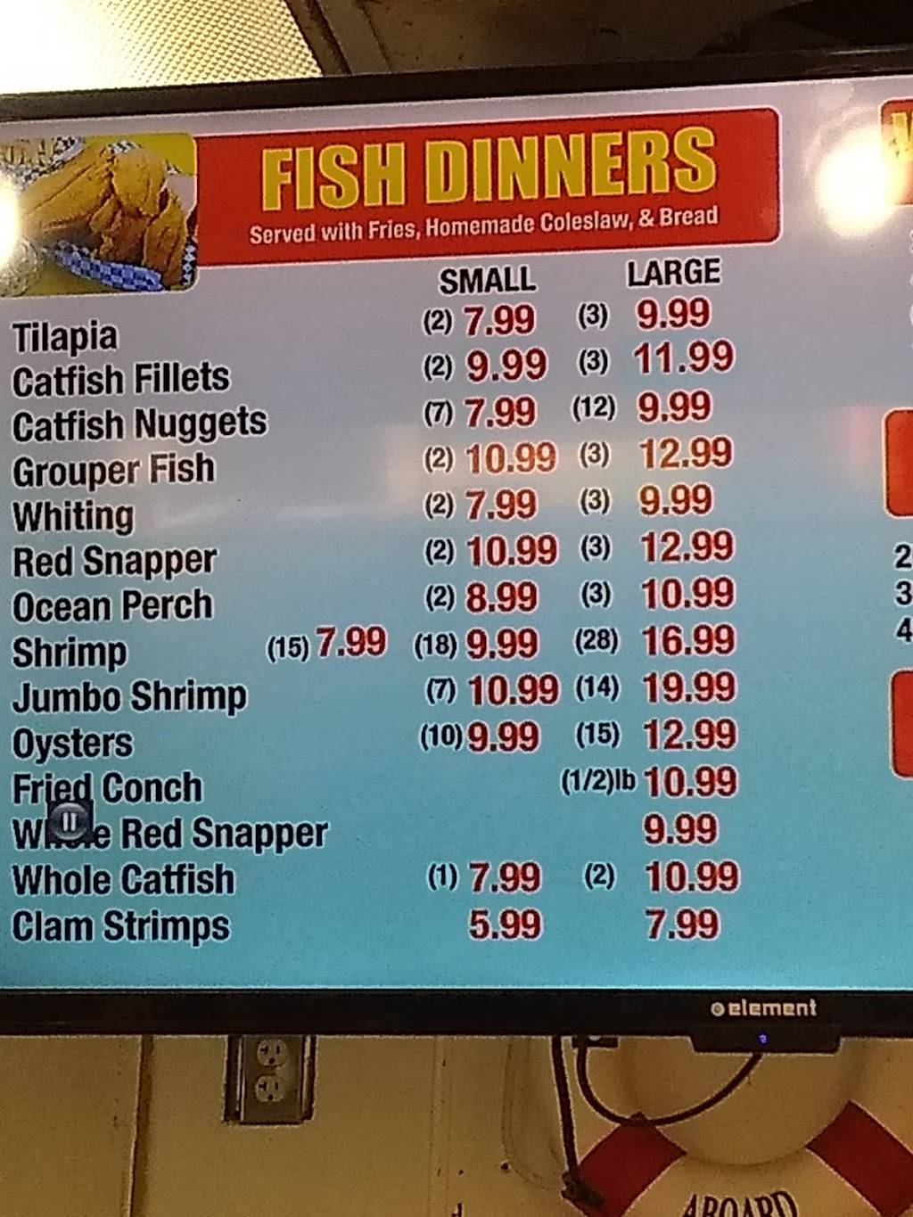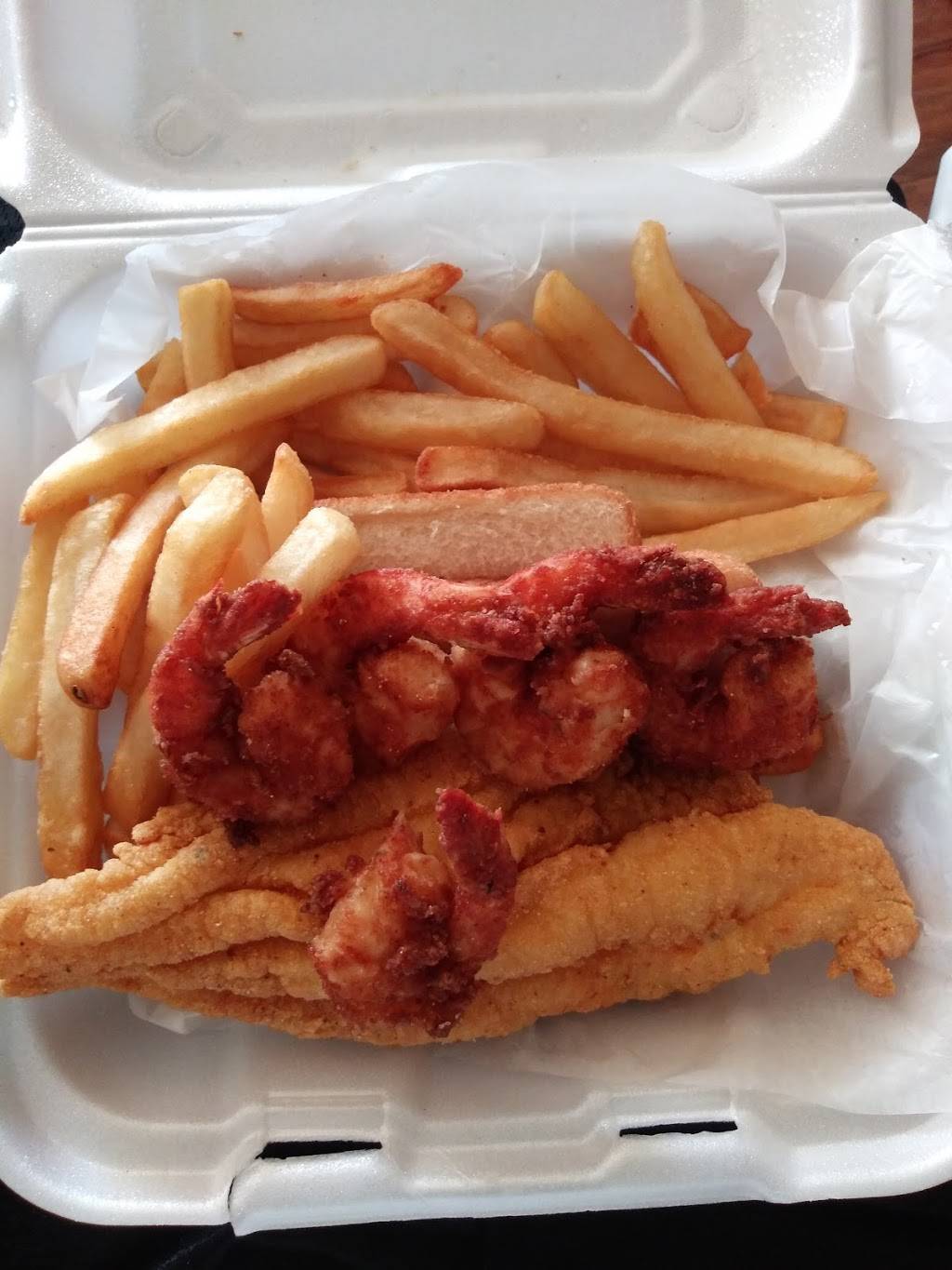 Good food for the price. Paid $4.99 for a fish filet, 5 shrimp, fries, coleslaw and 2 pieces of bread. Fish could have used a tad bit more seasoning or mustard before frying but will probably be one of my go to lunch spots