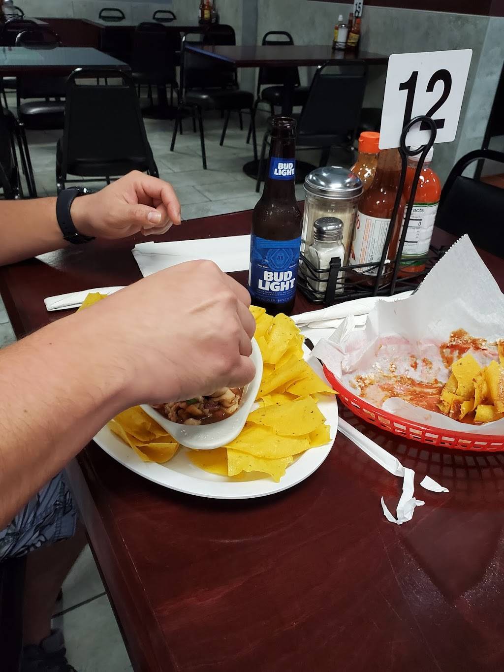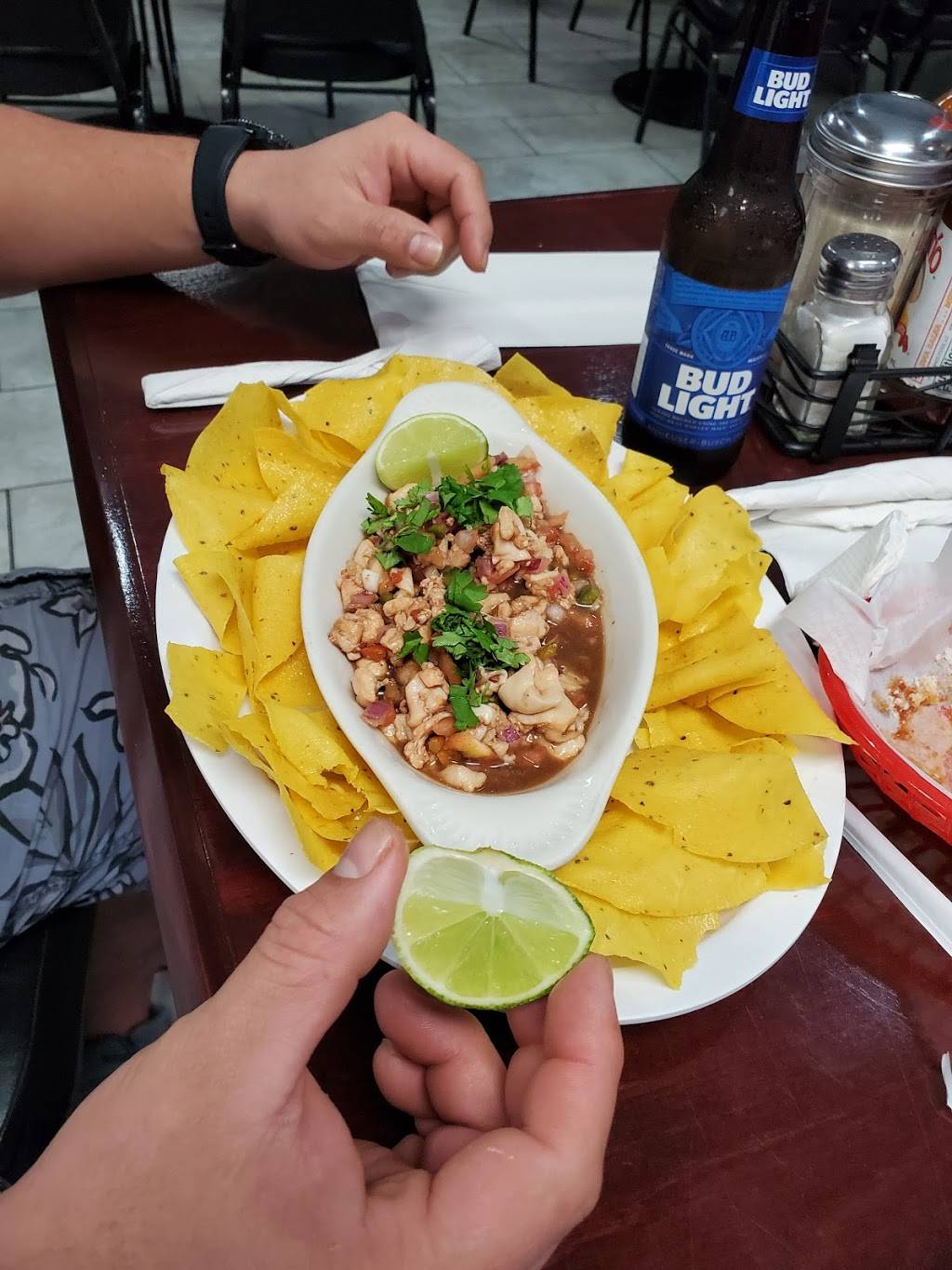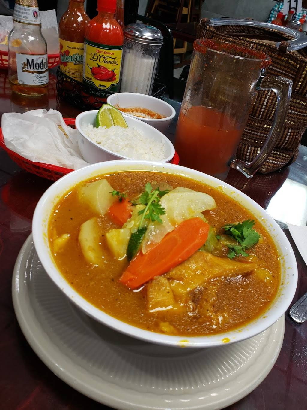 We had the mojarra platter and coconut shrimp sopa. So good. Nice people too.