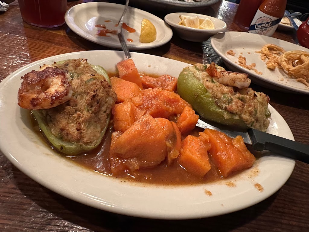 This place is awesome. Charbroiled oysters, Oysters Rockefeller and Eggplant sticks. The service is incredible and they are very quick with the refills. If you want a great seafood place that will not break your wallet, go in and eat away. Big screen televisions on the wall and very nicely decorated inside.