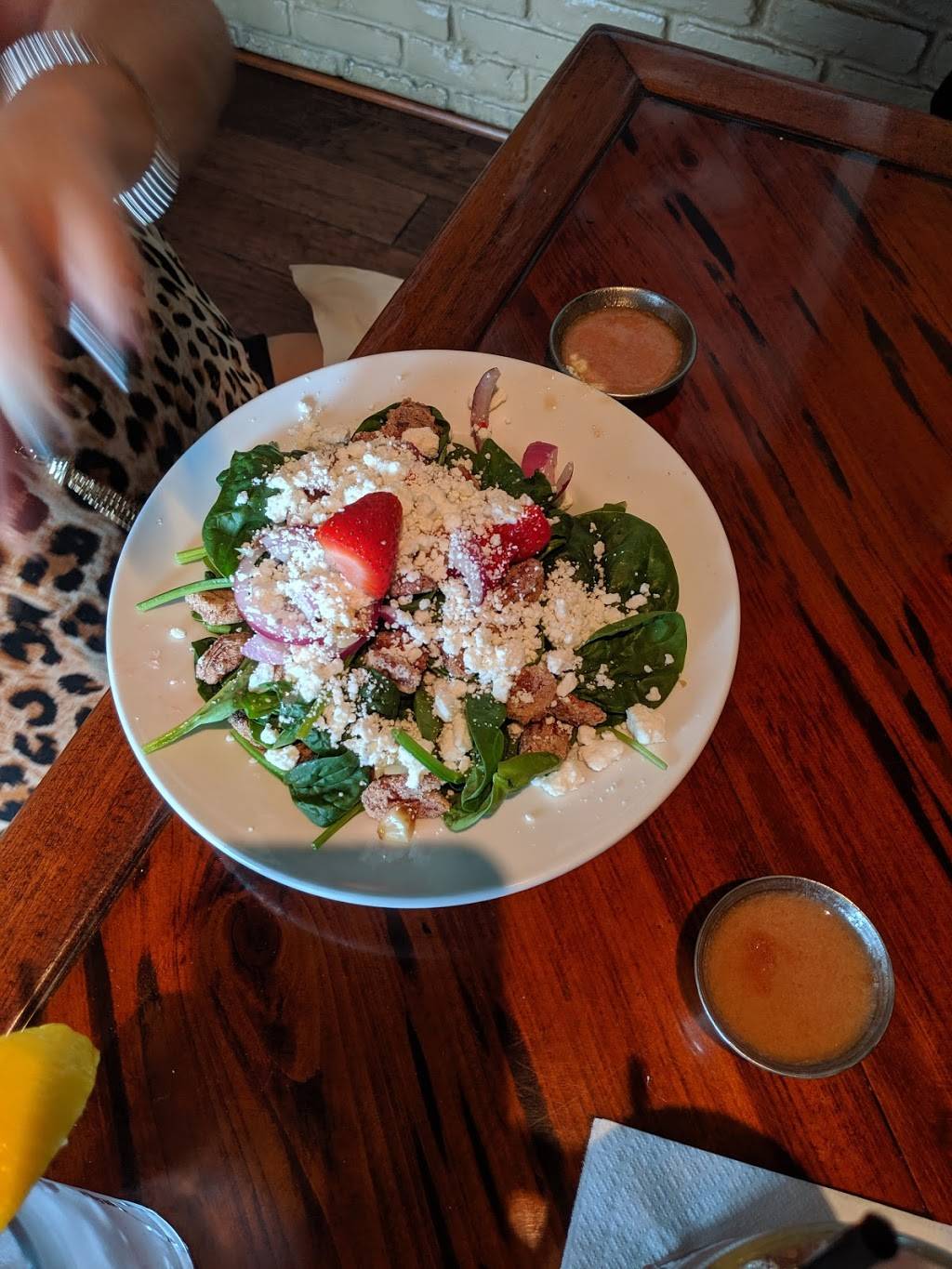First time eating there with my husband. We had BBQ platter, spinach artichoke dip and soda. It was a lot, but it was good. The staff was very friendly, the service was good, the place is decent.