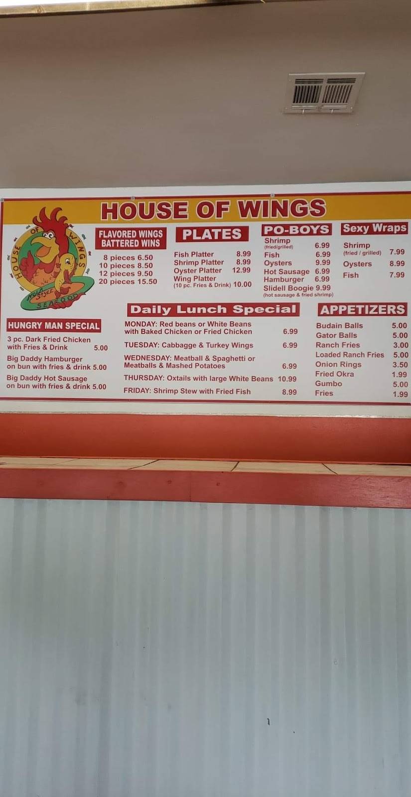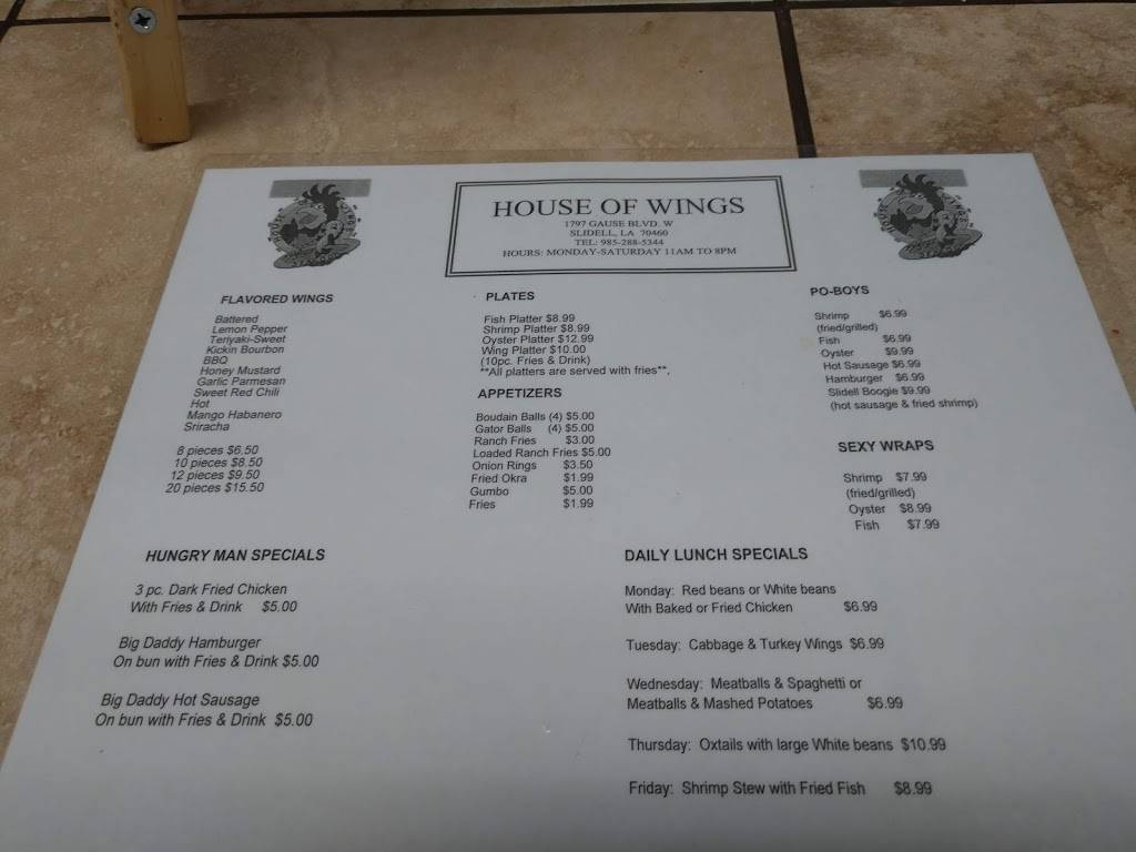 This place has great food and excellent service. It has become one of our favorite places to eat in this area. With the variety of wing flavors, yummy po boys, great service with special orders, House of Wings is our quick bite place!!