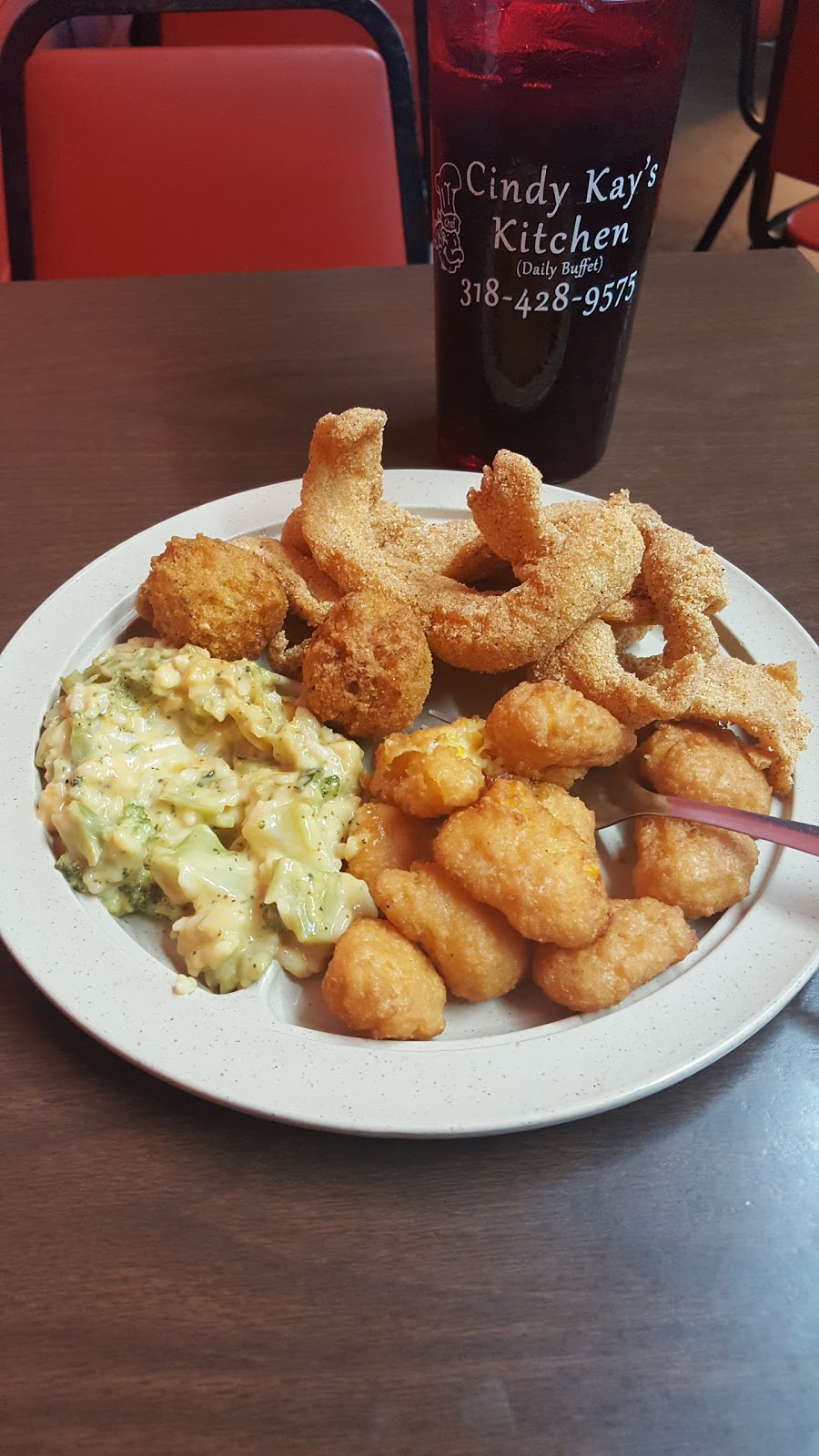 I was in Oak Grove for a funeral and went to Cindy Kay's for lunch with 7 family members. Unfortunately most of our food was very salty and also had too much pepper. One person got the lima beans, and she could not eat them. Maybe today was just an off day. We had eaten there before, and all the food was good. There was a good selection, but we had to wait for a while for the fish.