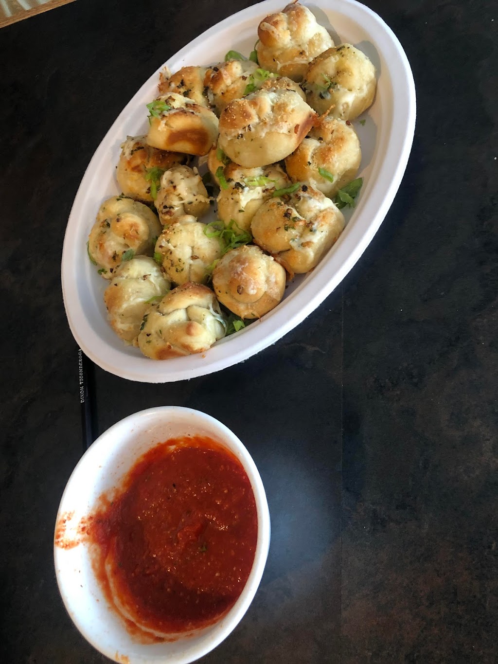 Lots of parking out front. Bar area and about 7 tables. Staff was very nice. Pizza was excellent. Both had 10" with enough to take home. Good alcohol pricing.