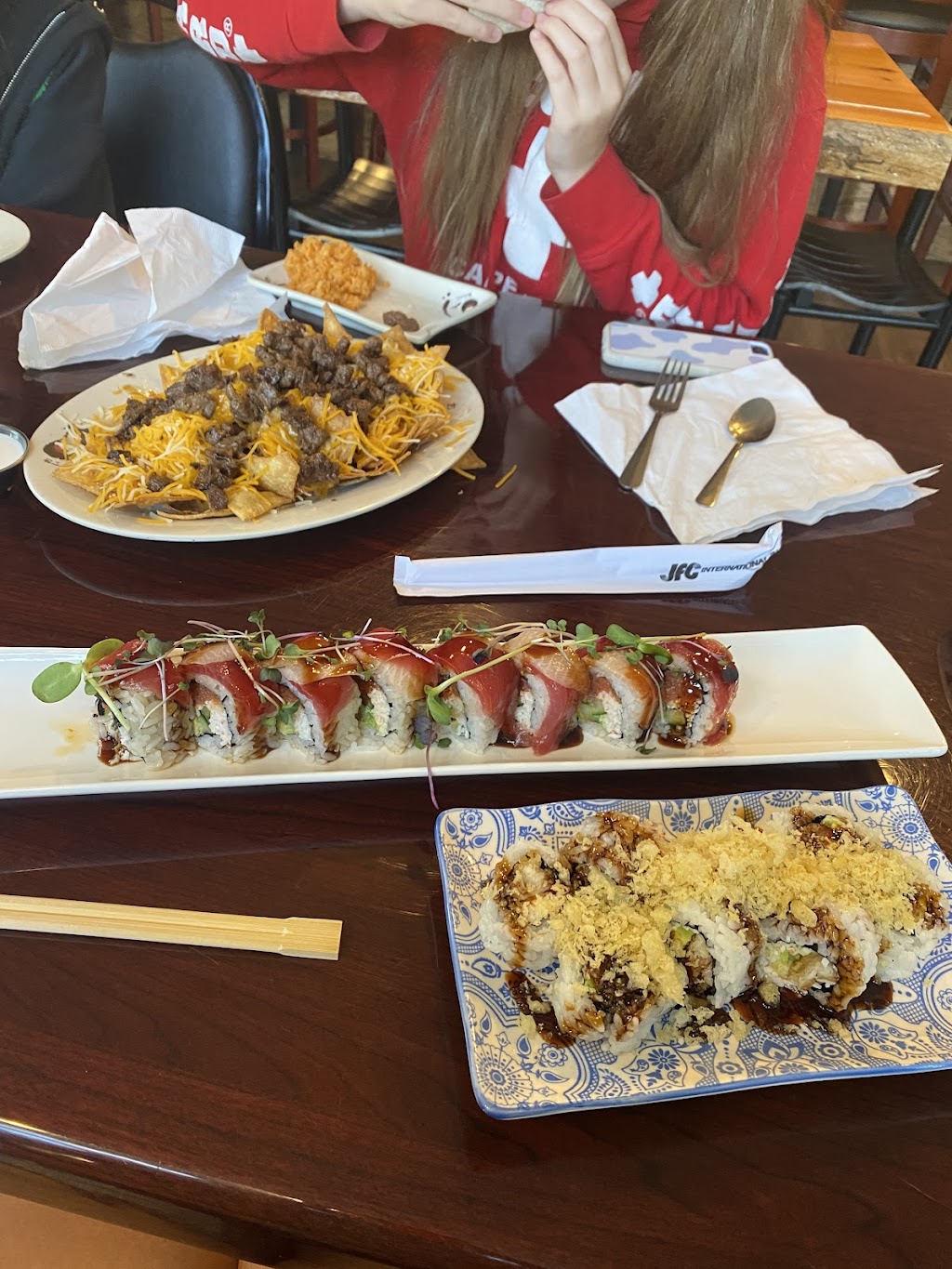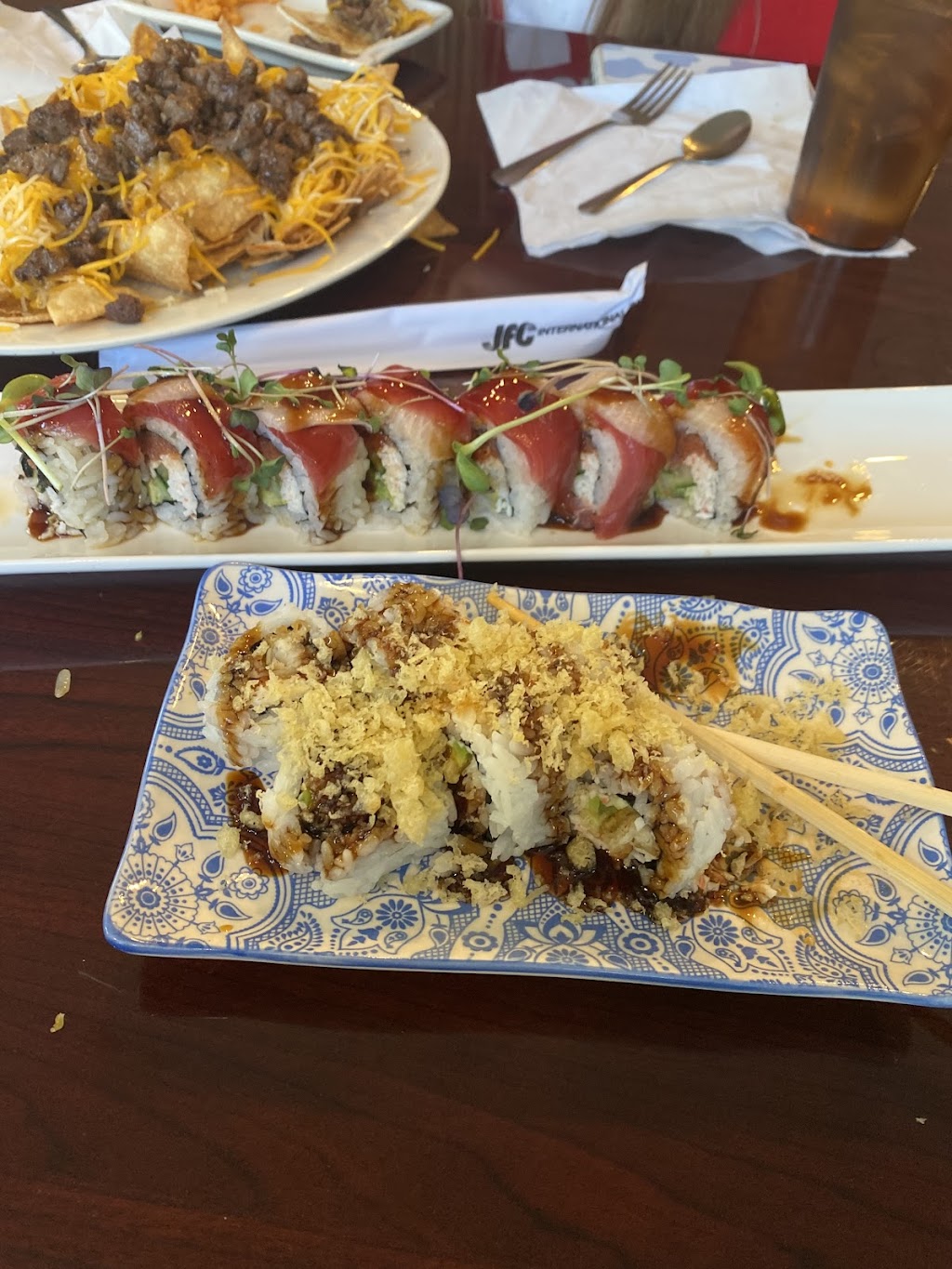 Highly recommend! We were in Bridgeton on vacation and after a few hours of shopping we stopped in for a late lunch. Everything was phenomenal. Our little group got the beef tacos - nice chunks of meat with so much flavor! Sushi nachos were so good, lots of flavor and the sushi was so fresh! We also got the Dragon Roll and the Shrimp tempura - both were absolutely delicious! If you want some fresh delicious eats then stop in!