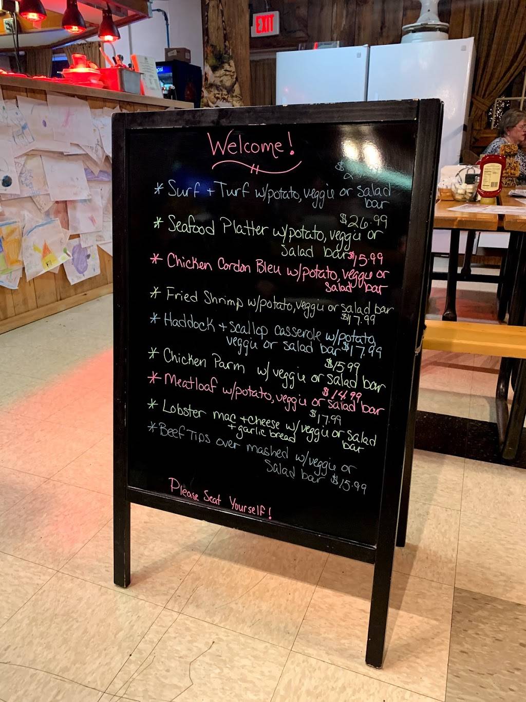 FOUR STARS, because sadly they don't know how to fry Seafood. Everything else was 5 Stars!. Their salad bar was nice and fresh, their dressings were great, Their Prime Rib was excellent.....homemade dinner rolls , carrots (cooked under the Prime Rib) were great. Their deserts were drooling to look at (especially their Whoopy Pies) Staff and Owner were great and friendly. Only thing missing was how to fry Seafood! Will be back! ! !