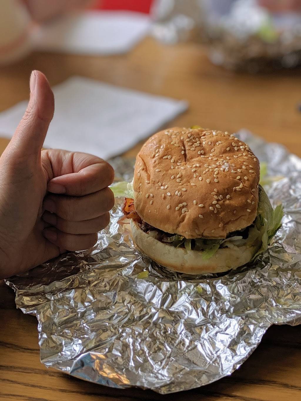 My daughter said this place was where she wanted to stop for a great burger and fries and we stopped because it was her birthday. I'm a vegetarian so I didn't have hopes for anything good for myself but I was wrong. Amazing vegetarian sandwich. Best I've tasted in a long time. I'll gladly go back.