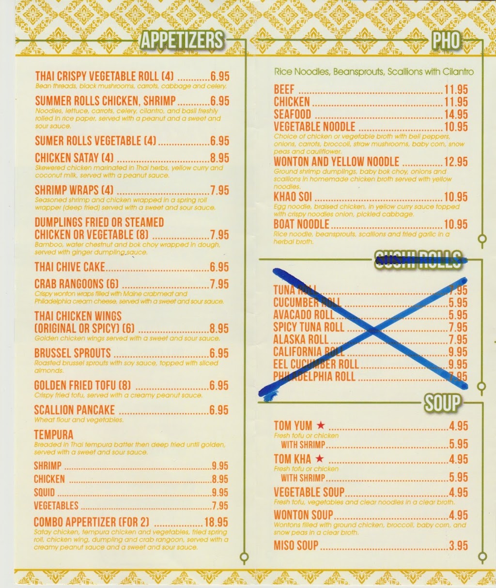 Amazing new Thai place in Bath. Fresh, delicious, and great sized portions! Owners are super nice! Definitely give it a try.