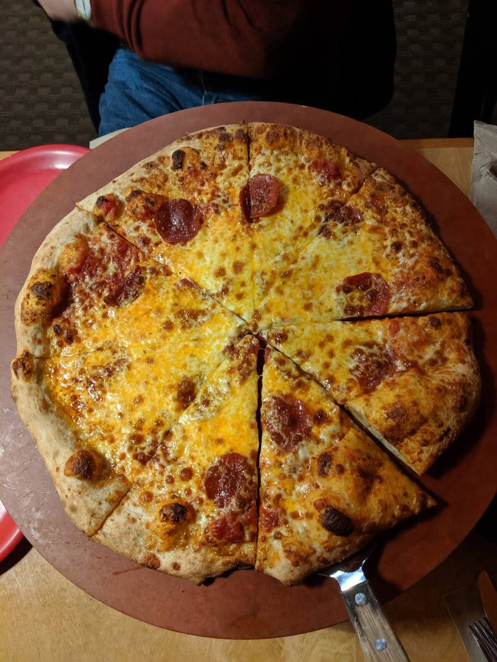 I would hate to give this place a low rating. The food here has always been delicious and filling. I haven't had any problems with the staff. I did come here on a Saturday evening and it was extremely busy. I saw many orders go out. My family and I ordered one pizza and it took around 50 minutes to get to us. We understand it was busy but I feel 50 minutes for a pizza was unnecessary. People who were seated after us had gotten their food before us, and most of it was pizza. When we got the pizza it tasted delicious and it was worth the wait, I guess.