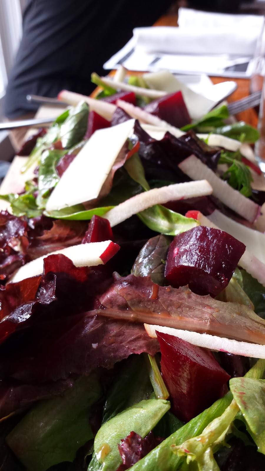 Great spot for locals with a very upbeat vibe. BUT SO SO SALTY, and in my opinion, overpriced. We had the roasted beet salad for $13. The serving was minuscule and almost too salty to eat. I had a fish stew for $32 that was again too salty and over priced for its contents: almost all mussels no discernible lobster or shrimp, no clams and a piece of fried something (a fish filet I believe) that was hardly edible. Passable Chardonnay @$11 a glass--again over priced. Wait staff was very pleasant. That said I'm not expecting to return in the near future. Try Pearl Spats, Hurricane or the Tavern instead.