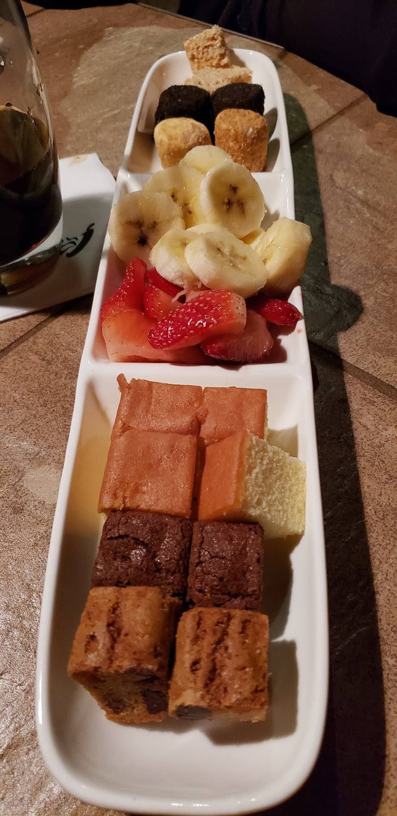 My husband and I enjoy getting dessert here. It's a fun experience overall. This melting pot looks similar to others we have been to (general setup). It has a warm and cozy atmosphere. In all the times we've been to this location the waiters have treated us well and we enjoyed our chocolate fondue. We've also gotten drinks at the bar before and that was a good experience as well.