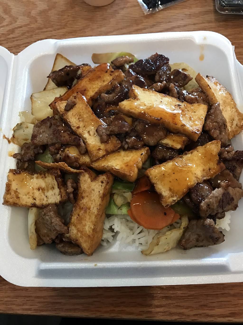I love their chicken and beef combo with noodles and veggies.