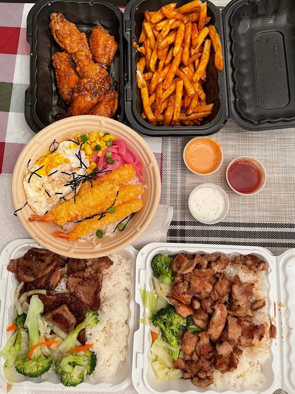 Food: One word - yum. I got a side of fries, the chicken teriyaki, beef teriyaki, shrimp tempura bowl, and honey bbq wings. LOL my fiancé and I wanted to try the entire menu but we had to resist. Fries were crispy and delicious and you can see how you get a lot for a serving. The shrimp tempura was a great - crispy, light and I loved the pickled onions! Beef and chicken teriyaki were well made and such a huge portion size! I usually expect teriyaki to be super oily and drippy but was pleasantly surprised that they weren’t yet still kept the flavor. Was expecting more sauce but I like to think that it being on the healthier side is a plus. My ultimate favorite has got to be the wings! The honey bbq was absolutely mouth watering. I’m a sucker for chicken wings and once I had a bite I couldn’t put it down.. will definitely be going back for those and trying the other flavors. They were a good size too. Overall couldn’t finish everything cause there was just so much food but that is never a bad thing imo. Got my bang for my buck.