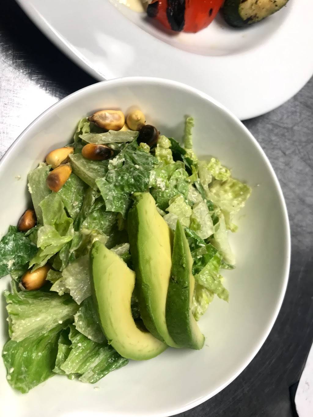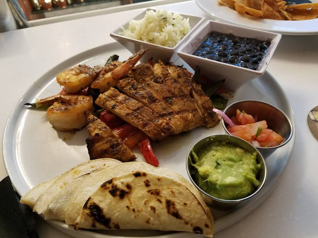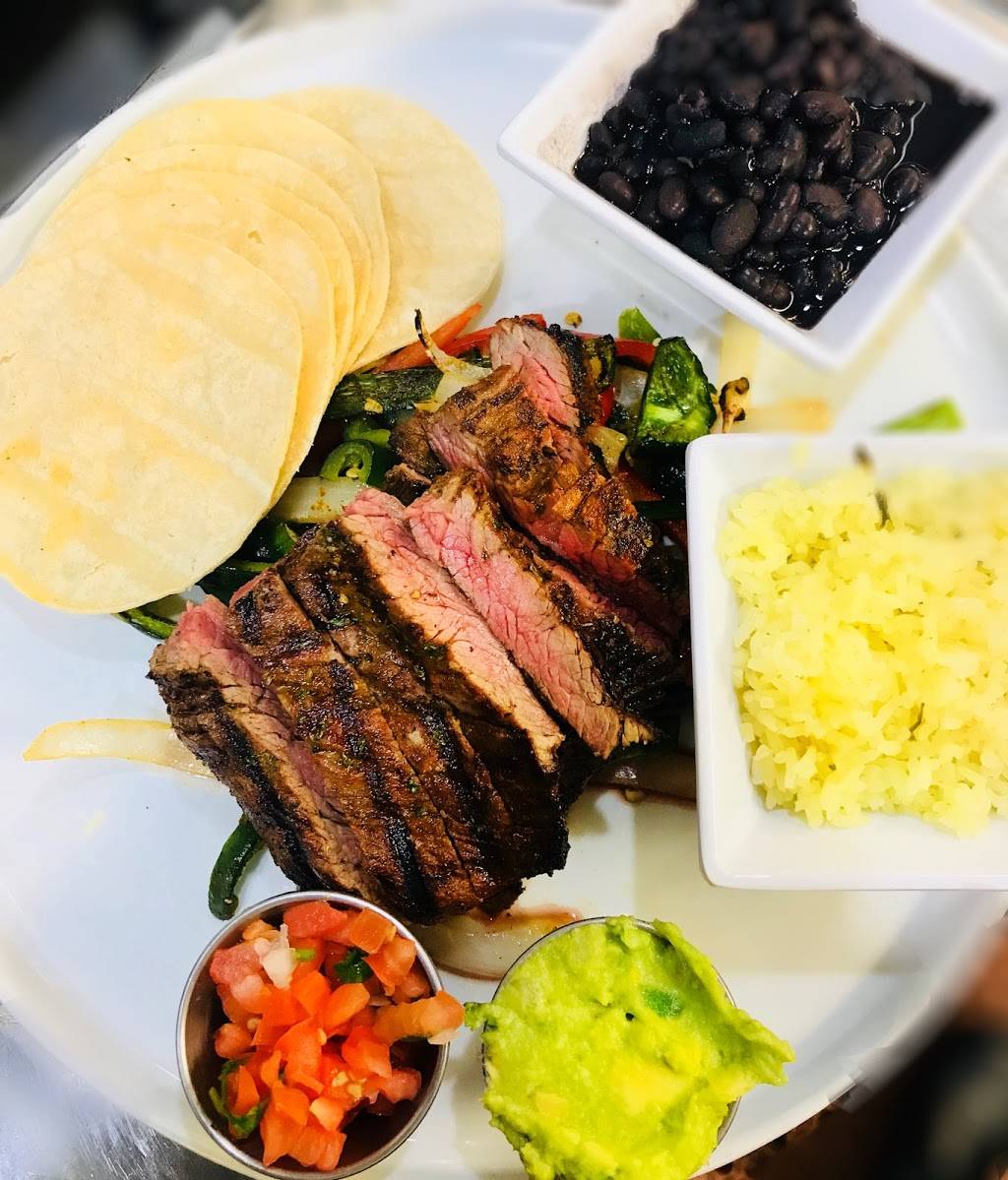 I just had the most oniony bomb guacamole in the dark! It was no one in there I could hear myself enjoying the chips. The art was absolutely beautiful and the lights were cool very night atmosphere. I got the steak rice and beans, the steak was so good! It was so chewy like a tire! The margarita was strong but didn’t taste like it at all, which is great. My boyfriend had the driest salmon, it was good but definitely crispy and the grilled zucchini. Everything was so good.