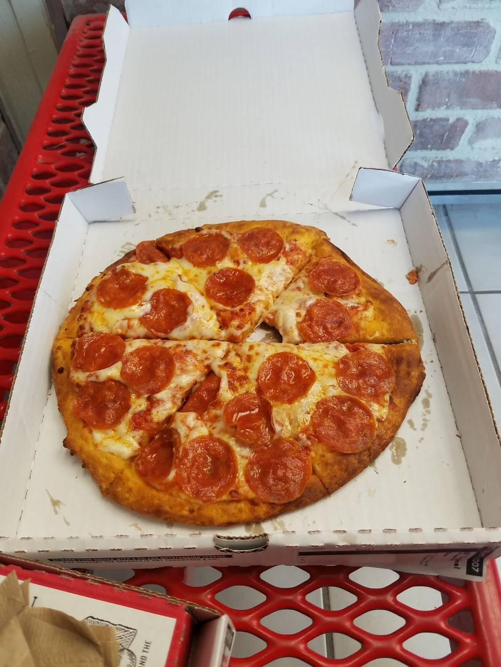 Fast, no hassle and good taste. Pizza has a roll of delicious dough around the edge, like getting a bread order for free.