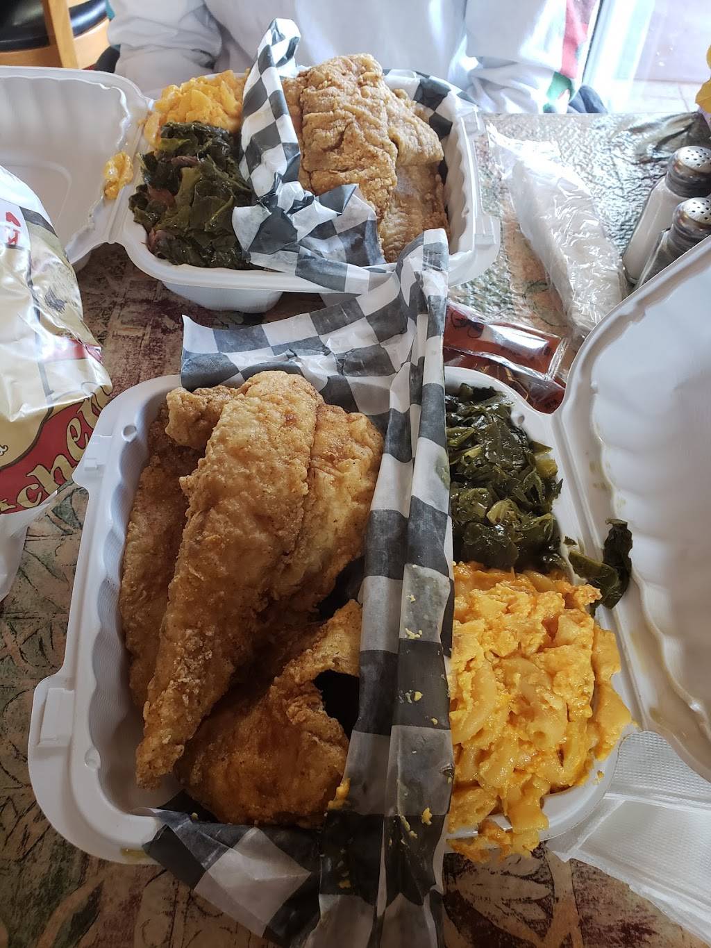 I met family to eat here, just because it was about half-way between our homes. We’re originally from Alabama, so a Southern/Soul food restaurant seemed promising. Wow, am I happy we ate here! It reminded me of a more modern ‘meat and three’ restaurant from home. Also, I can’t eat any dairy, because of my infant daughter. The manager came out and was very helpful, telling me the items I could safely eat. The fried chicken, collard greens, and yams were delicious! It was a meal of comfort food that I’ve missed (and big portions!). I only wish they had a baby changing station in the bathroom. Thank you for a great lunch!