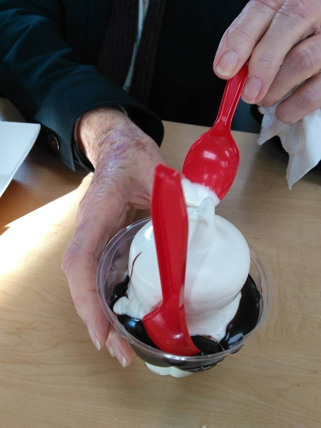 We came here for dessert. The service was friendly. Despite this being a fast food restaruant, the guy at the counter still brought our blizzards and sundaes. I thought that was pretty cool. He even checked on us while we sat and enjoyed our treats. The inside was clean, bathroom smelled good, and everyone working there was pleasant and seemed to care about doing a good job.