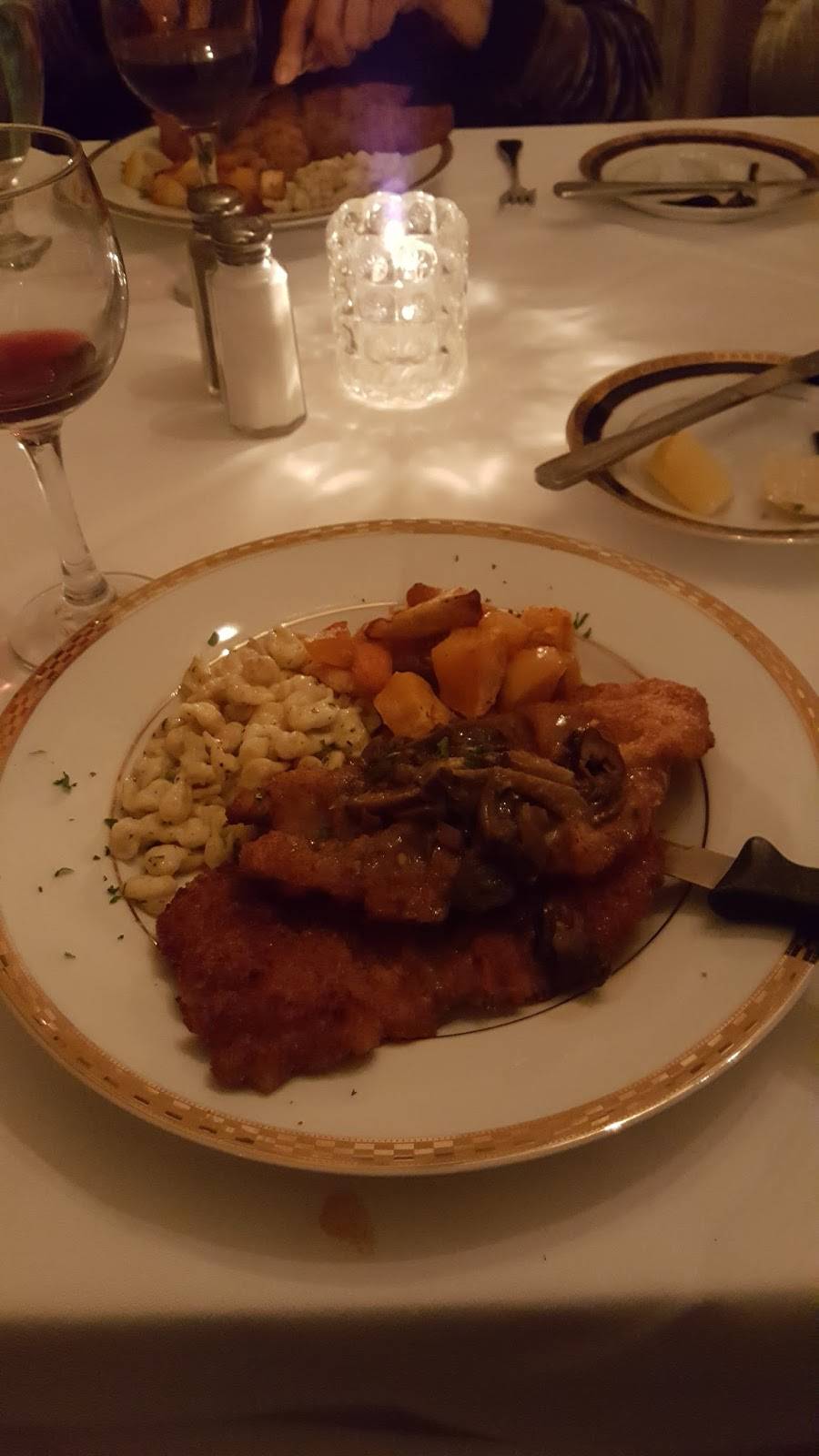 We had a lovely time here for dinner tonight! We dined in the restaurant section, and the tavern looked very relaxing and fun. The restaurant was quite elegant. My husband and I stuck to the traditional Austrian/German meals and really enjoyed both of our meals, as well as the strudel we shared for dessert. Our service was great, and we really had an absolutely lovely evening. We would definitely come back!