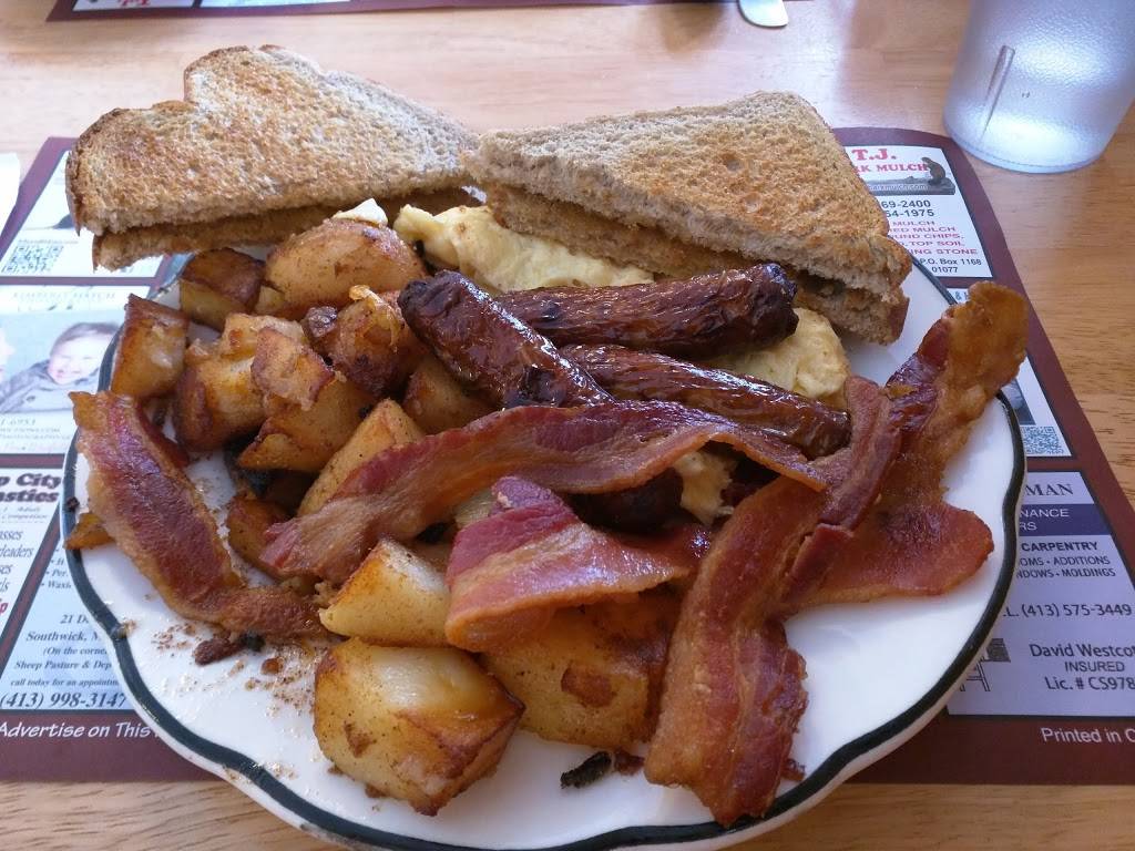 Recently went here with some friends. The staff was very pleasant, food was timely, and place was clean... My friends got the banana foster pancakes and home fries which they enjoyed... They make their own hash which she enjoyed as well... Omg they have vegan options too I had the veggie hash never knew this existed before. It was cooked well could of used some seasoning though. Small dinner in South wick Ma... Definitely worth a try!!