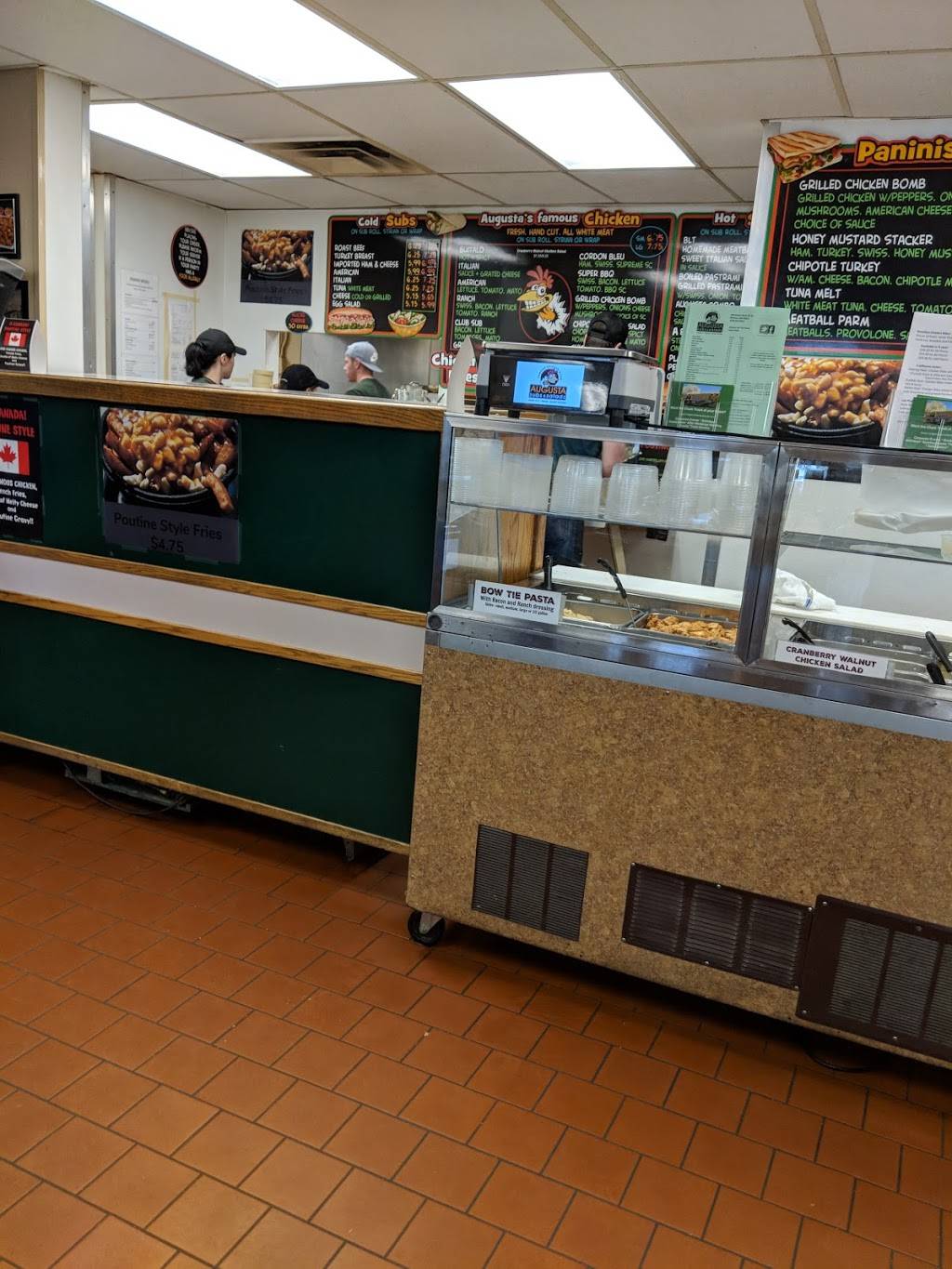 Augusta Market has an excellent menu ,specializing in chicken but many other sandwich options. A soup bar as well as a fantastic salad bar. Many other food items for sale, bakery , snack and beverage items. Augusta's also offer catering for corporate, office , family functions. You can order online or phone in orders for pick up. No delivery is available.
