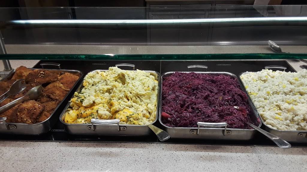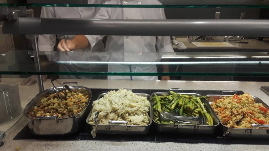 Serves the expected college cafeteria-like fare. Great place for a business meeting or to study.