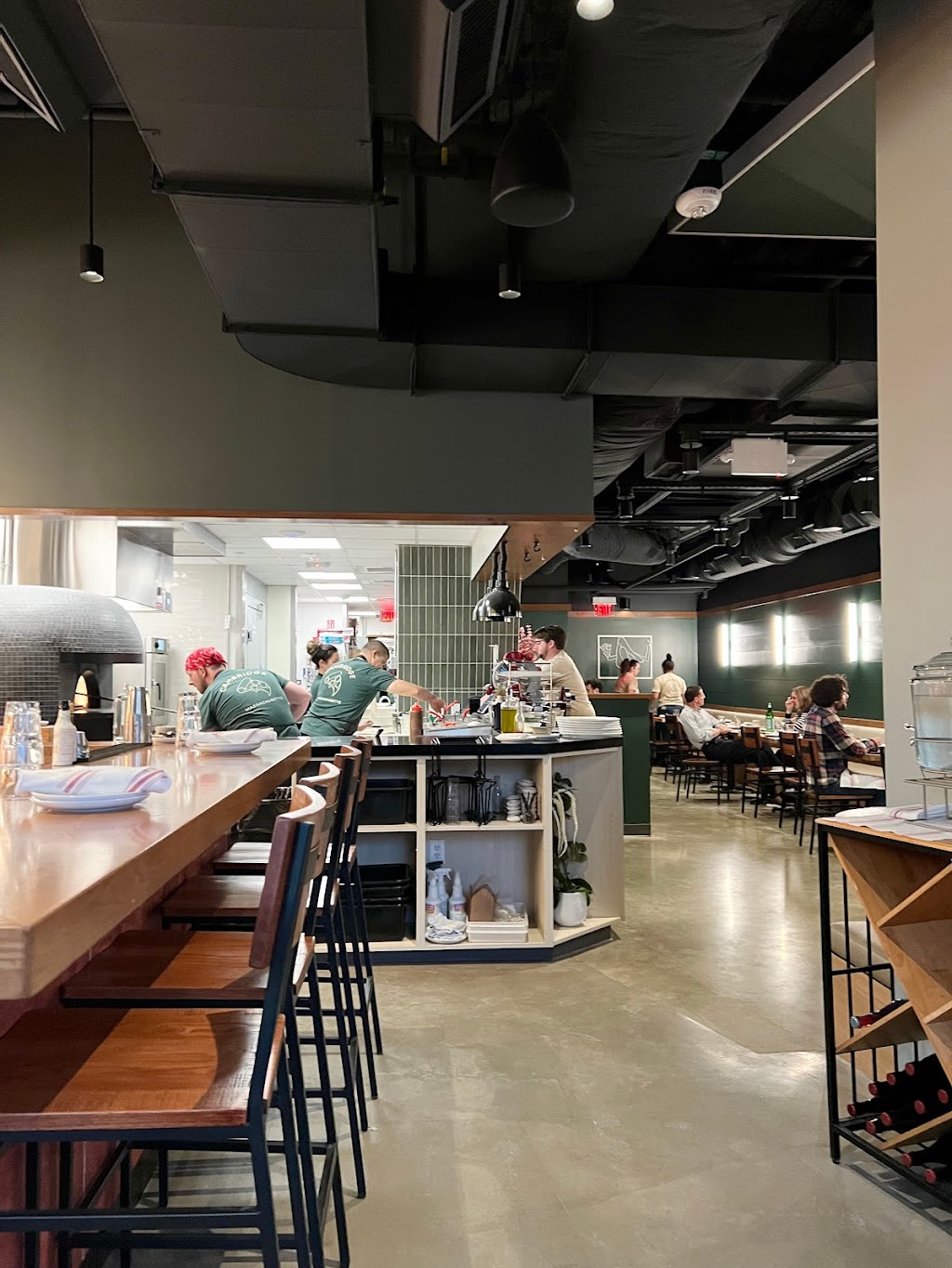 This place just opened and being locals in the area, we walked in around 8pm on Friday. The place was quite packed so we sat at the bar. We got the buratta pizza and added black truffle to it. The taste was INCREDIBLE. The sourdough crust melts in your mouth, the spinach sauce is so flavorful. The interior is beautiful and comfortable. I was impressed the owner himself was in the kitchen making the pizzas! Quite confident this will be successful! Great job.