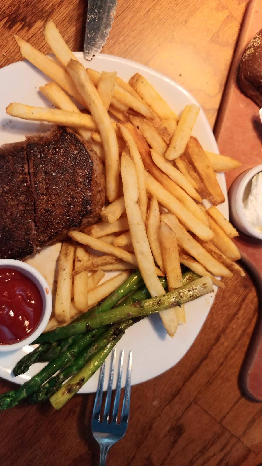 Would have rated higher because of the delicious onion soup and rib eye cooked perfectly. But the prices have gone through the roof. $92 @ lunch time for soup and entree for two @ a chain resterauant. No alcohol. A little high. Atmosphere is always lovely staff friendly and attentive. Bring a sweatshirt for little ones or sweater. It is very cold in the summer