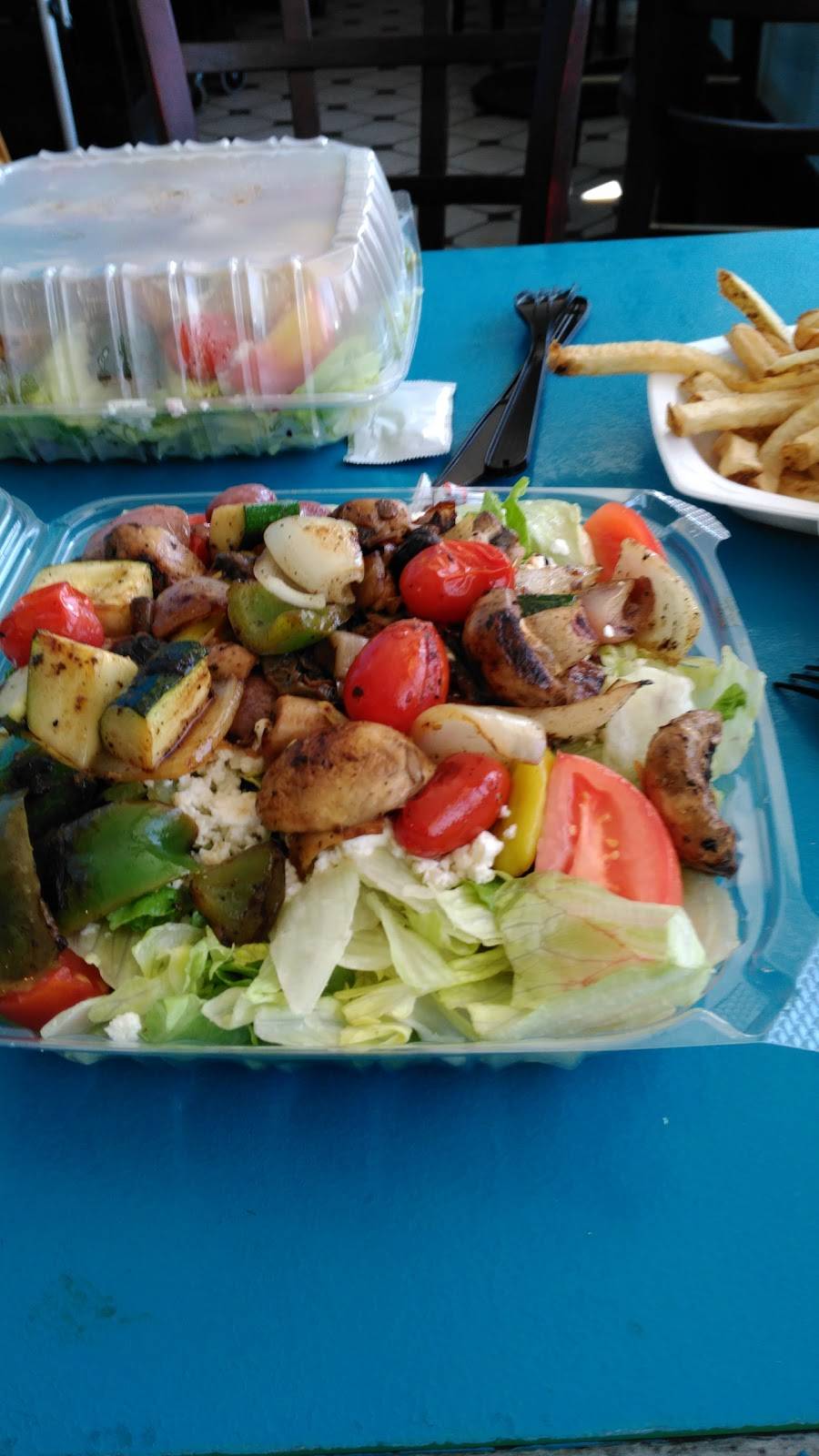Great Mediterranean selections as well as American fare. Gyros, grilled kabobs, ribs, grilled chicken, falafel, soups and killer fresh cut fries- all excellent. Try the salads and grilled vegetables. They make everything fresh and grill over a wood fire. Good sized portions and reasonably priced.