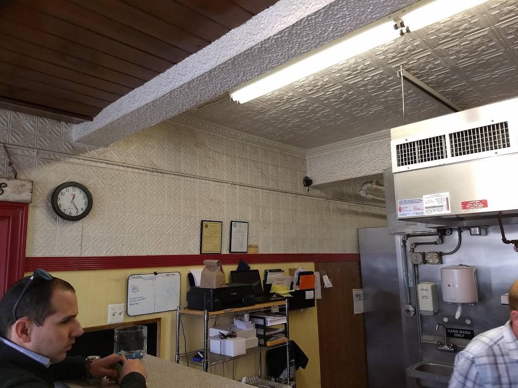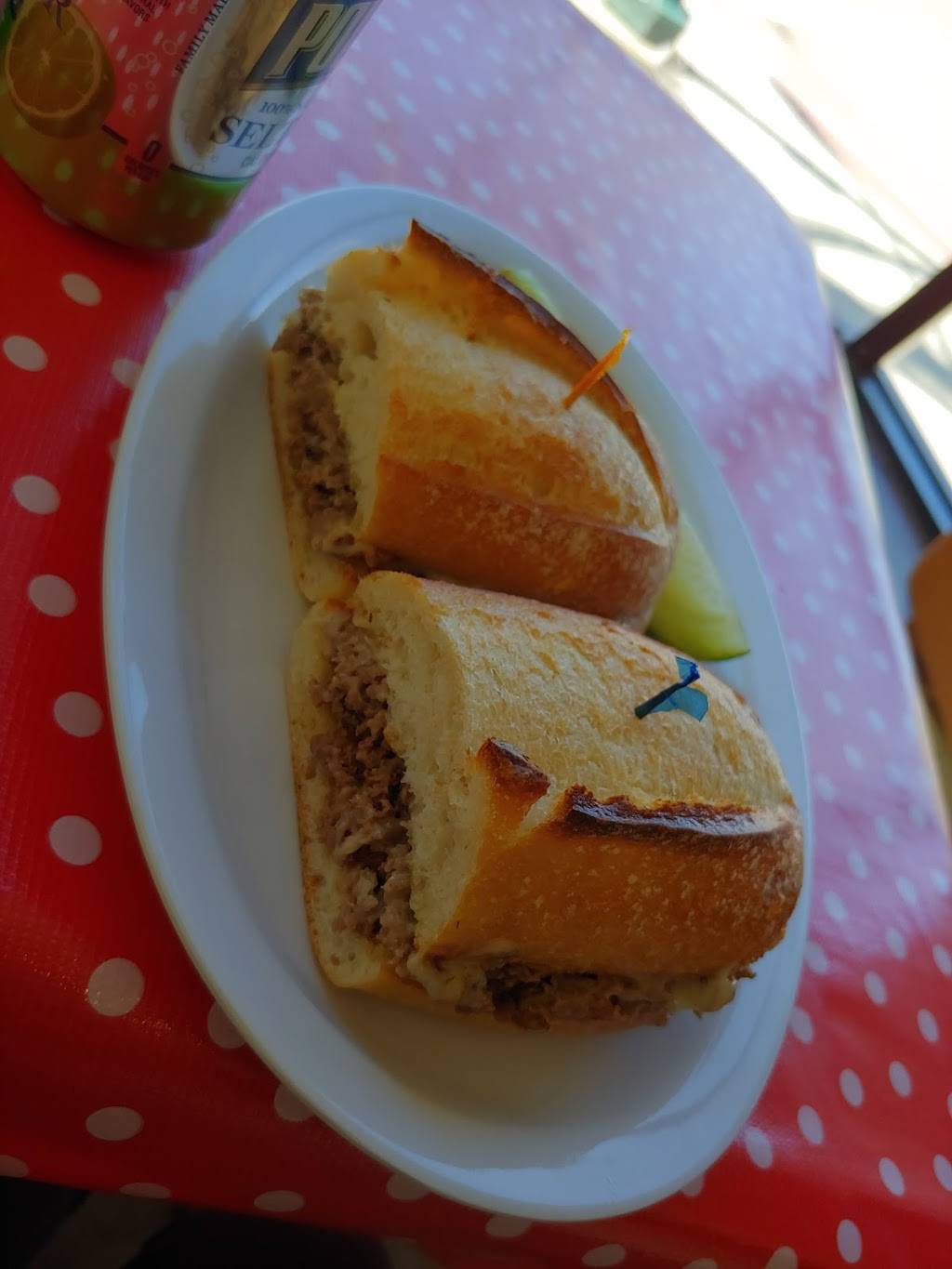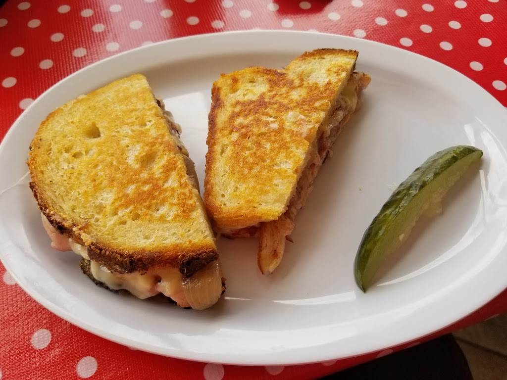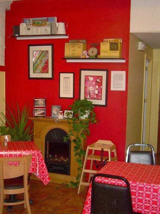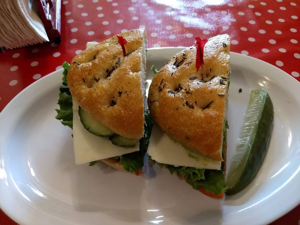 Charming dining room decorated with kitschy toy stoves and refrigerators. Pressed-tin ceiling. And my sandwich was fantastic. Flavorful cucumbers and avocado with hummus and roasted red peppers. The bread was terrific. And fine value for money. Highly recommended.