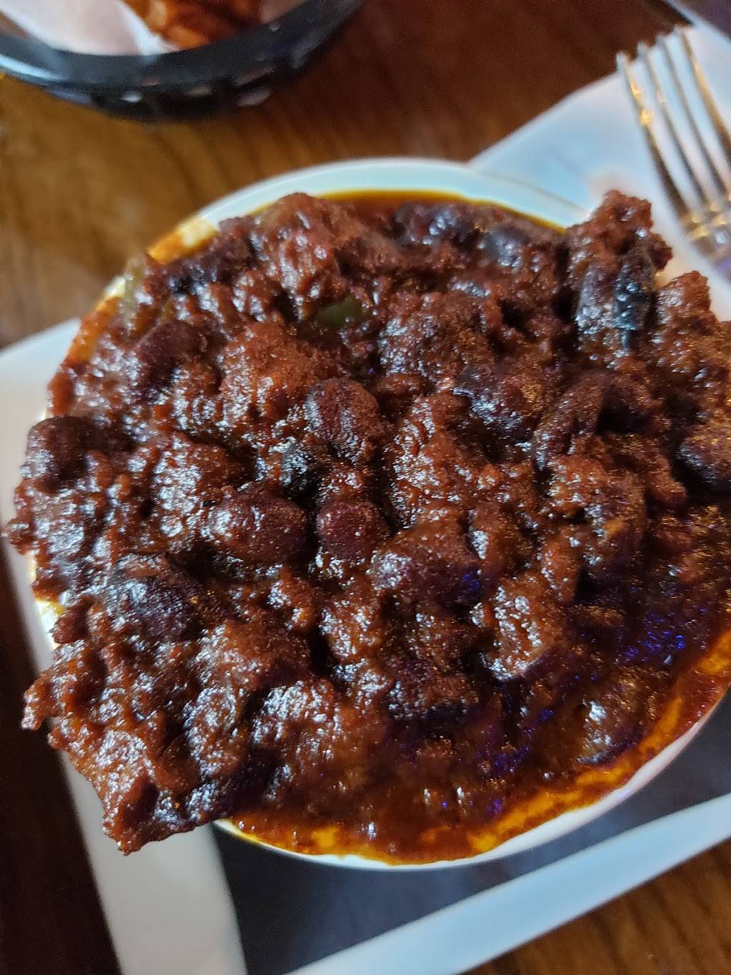 The food: I had the chili and it had some really good flavor. The waffle fries were done just the way I like, well done and brown. I also had the Nuggs, boneless chicken with Jamaican Jerk sauce and they were really good also. Great food made even better by great service thanks to Giana.