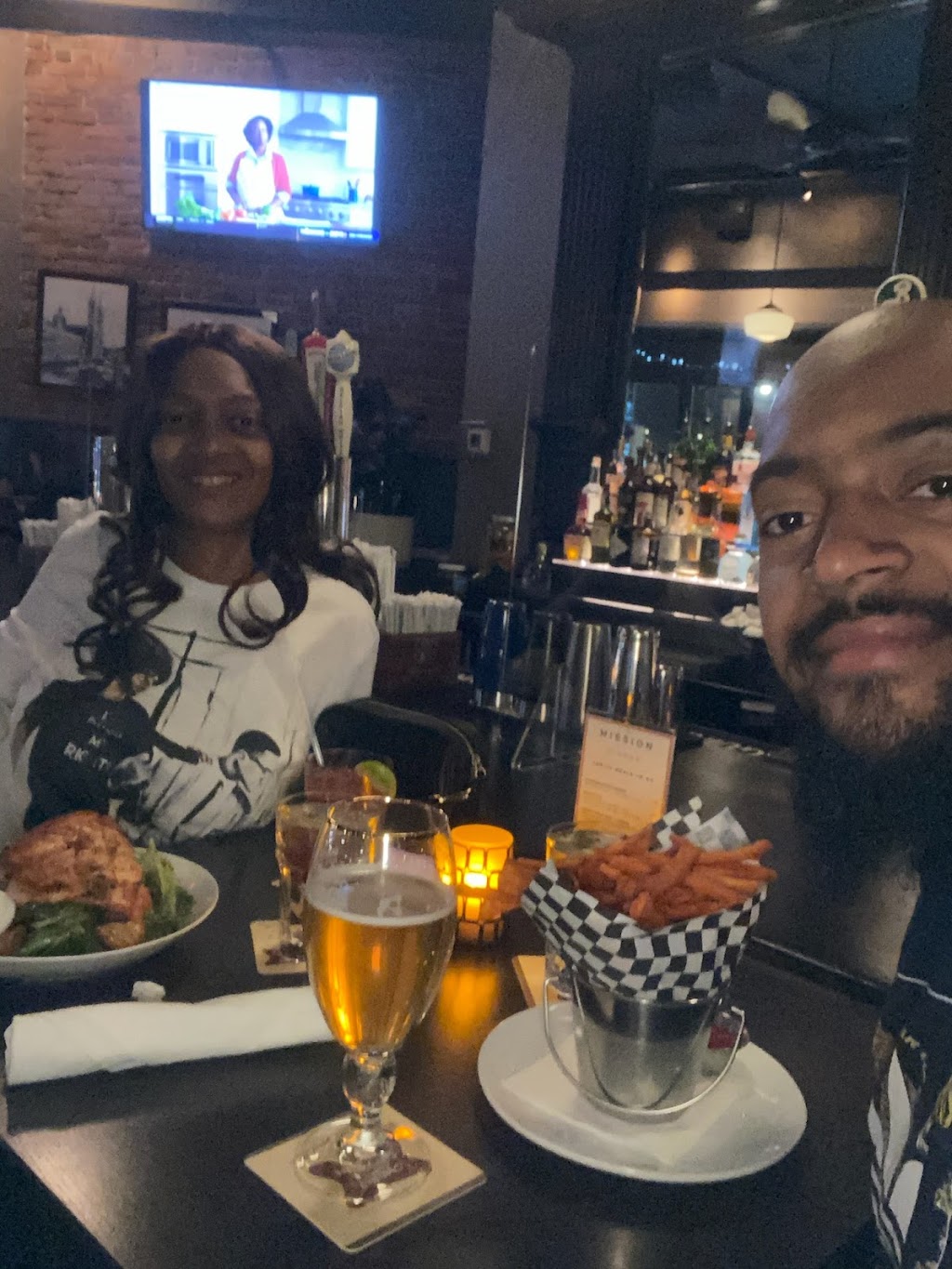 Visiting Boston and stumbled on The Mission for lunch. The steak salad was fresh, full of veggies, and made to order. My husband ordered the fish and chips and said they were the best he's had on our trip. We ate outside and the wait staff was very attentive. A nice treat!
