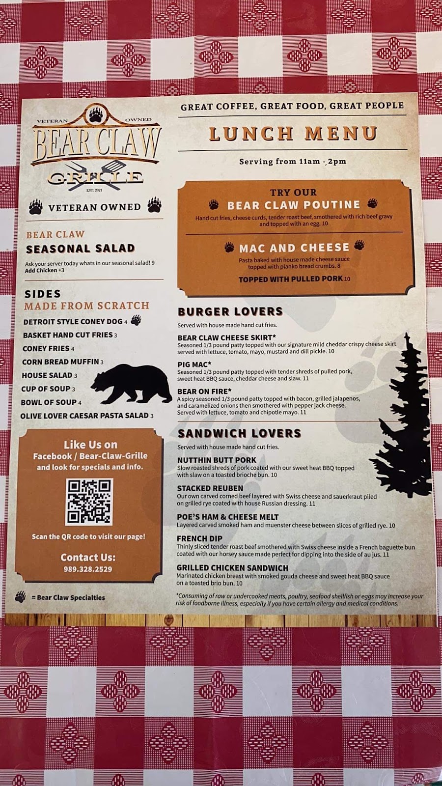 You can review this Business and help others by leaving a comment. If you want to share your thoughts about Olivia's Bearclaw Grille, use the form below and your opinion, advice or comment will appear in this space.