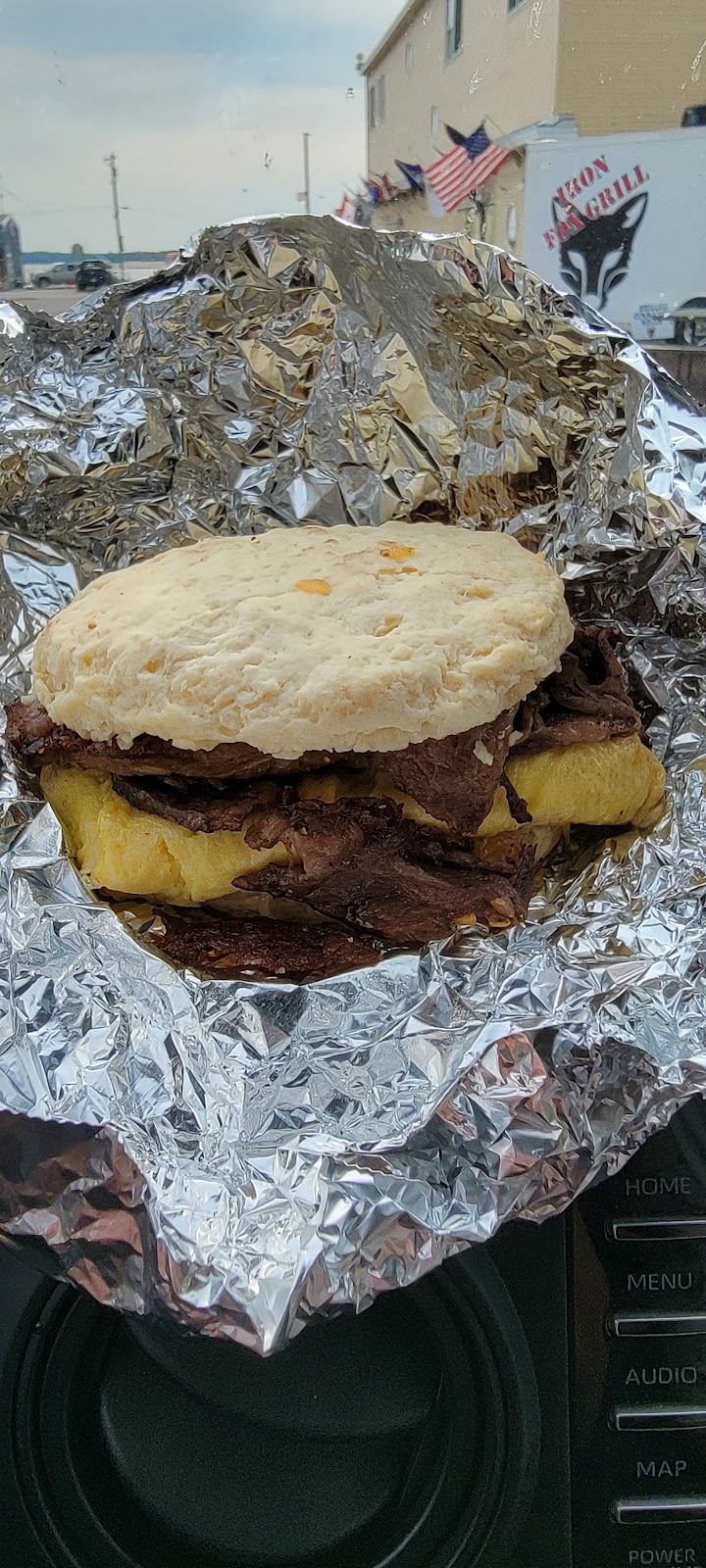 Biscuit ribeye egg and cheese. Shell ribeye egg and cheese.
