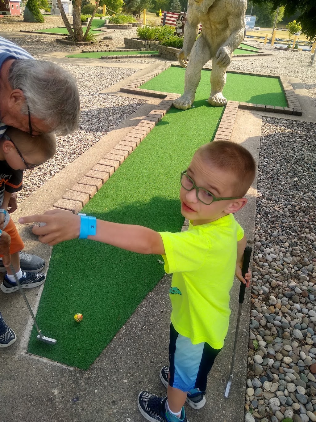 We were on vacation and did both 18 sets of holes. The one with the water was a bit more challenging for my 6 year olds but we had fun. The arcade was nice. The staff was very friendly and helpful.