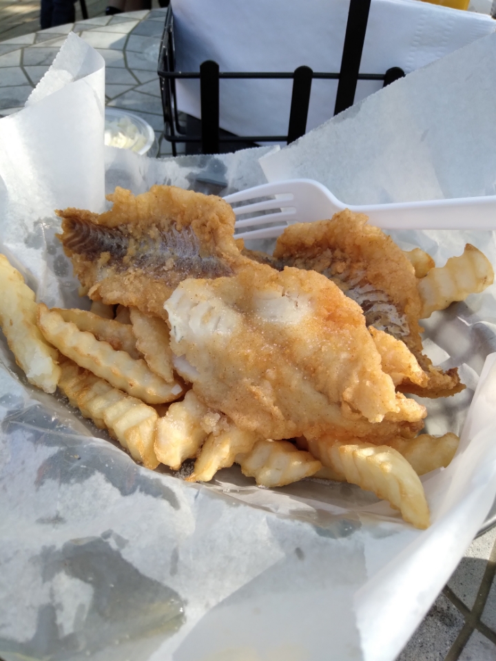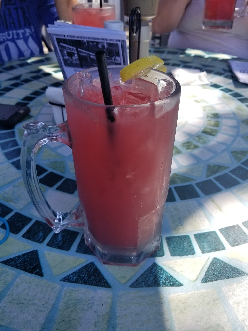 Awesome location, right by the water. Stopped in for a drink and fries. Good drinks and food. One asshat customer but what can ya do?!