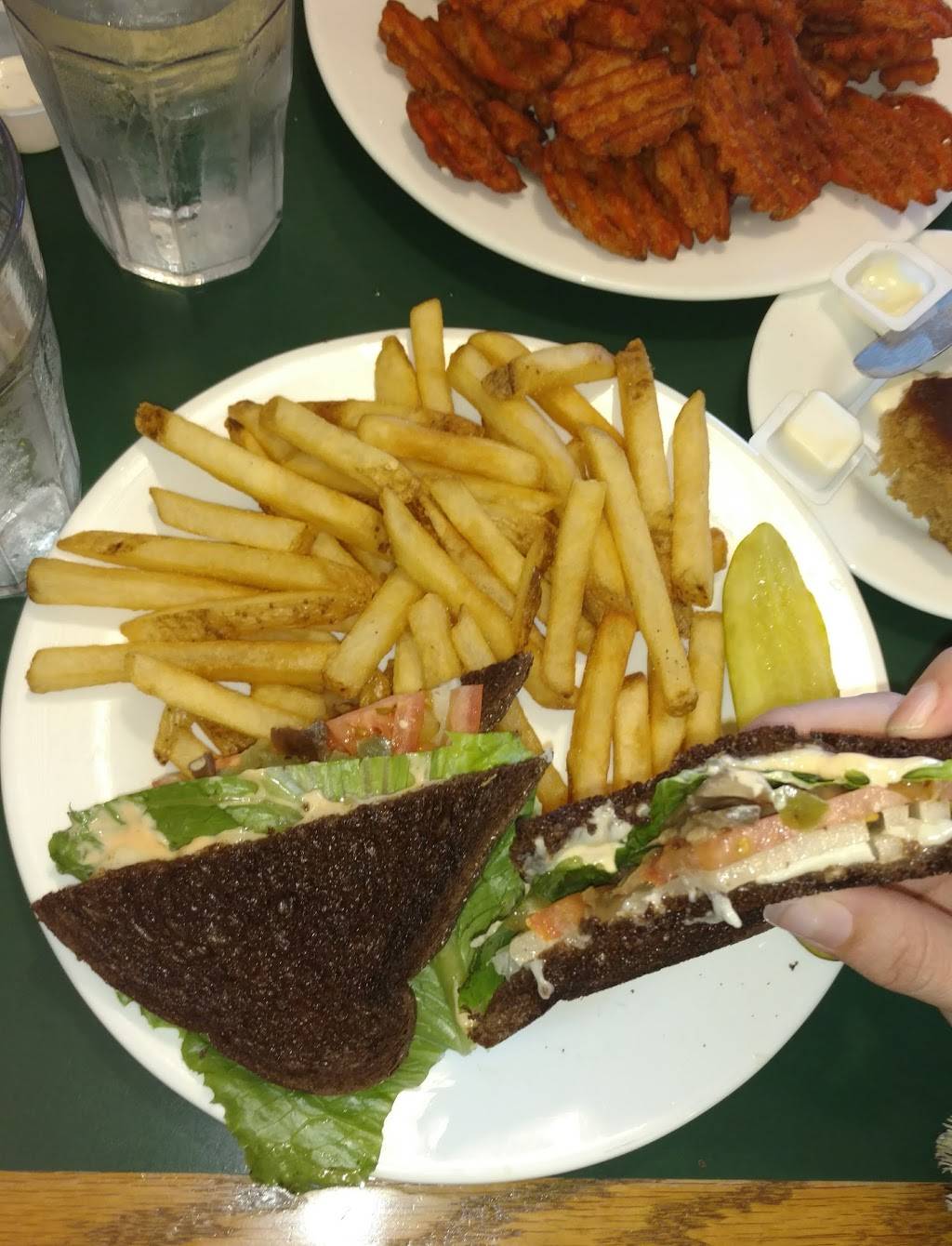 Our server was very nice and attentive. Usually in a small town people can seem very impersonal, you know, nice but not nice, but this gal was genuinely wonderful. The fish sandwhich I had was amazing. And the mushrooms, to die for, and gigantic. Loved this place.