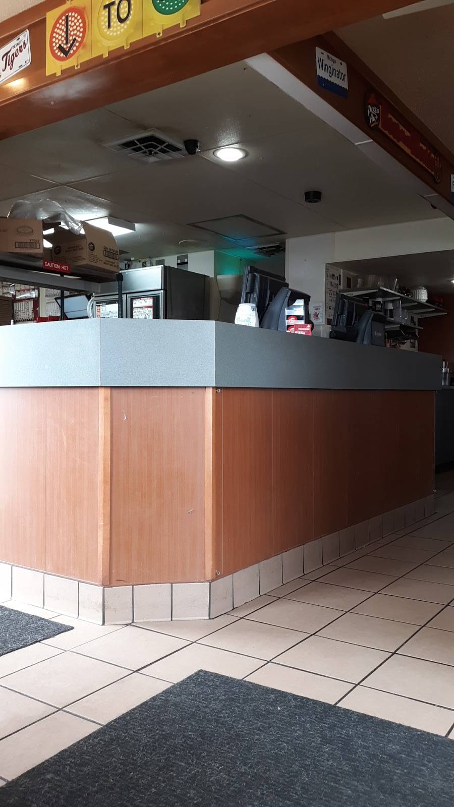 Cashier was very nice & helpful. Unfortunately, thru no fault of pizza huts, their server quit so there wasn't any inside dining. That inspired us to have an impromptu picnic. Pizza was great, she sent us with plates and napkins too!