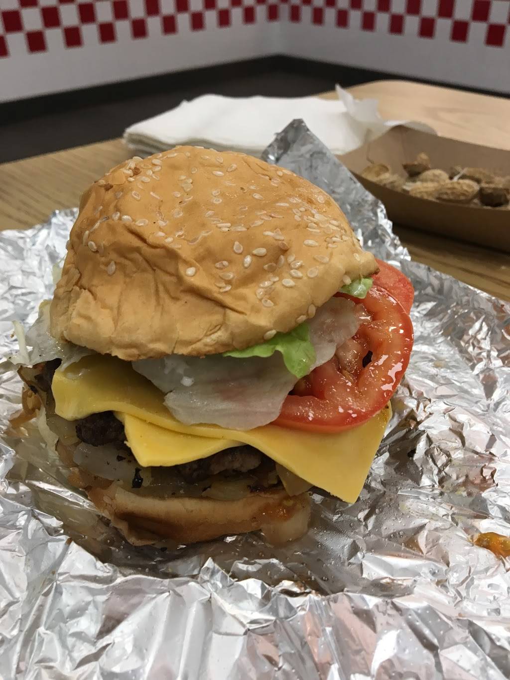 The burgers are delicious, everything is cooked to order and the service is quick. Love the free peanuts they give you. Just a great place to go when you're hungry and in a hurry.