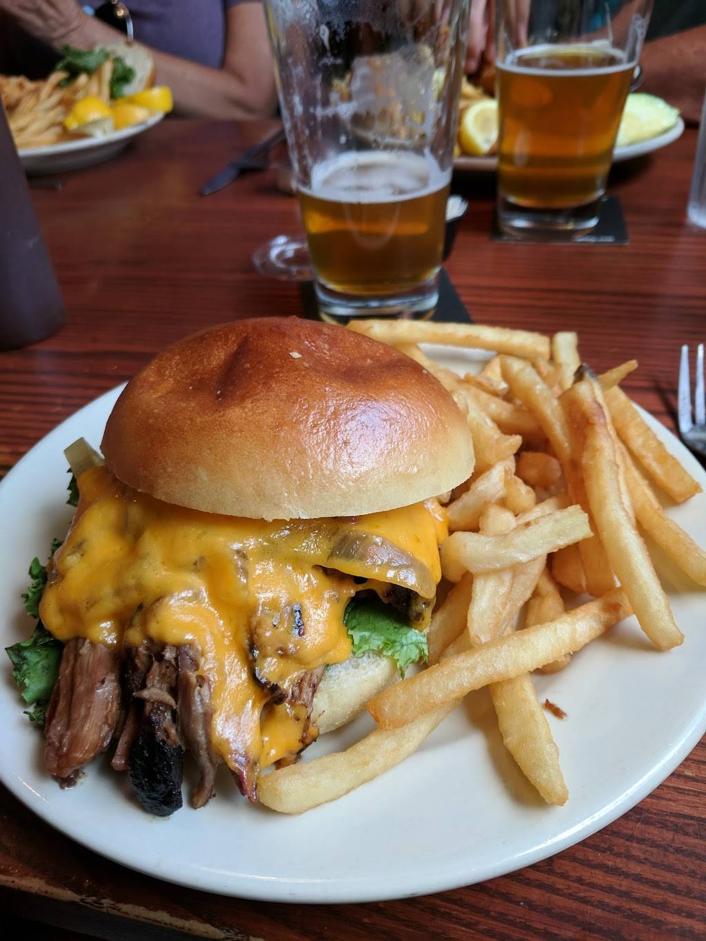 Cool place. GOOD FOOD!!!!!!!!! Busy, even on a Tuesday— but enough room at the bar. BIG beers-Definitely a pour for the $$. Friendly staff, good selection of wine and spirits. Small, but good selection of brewed beers.