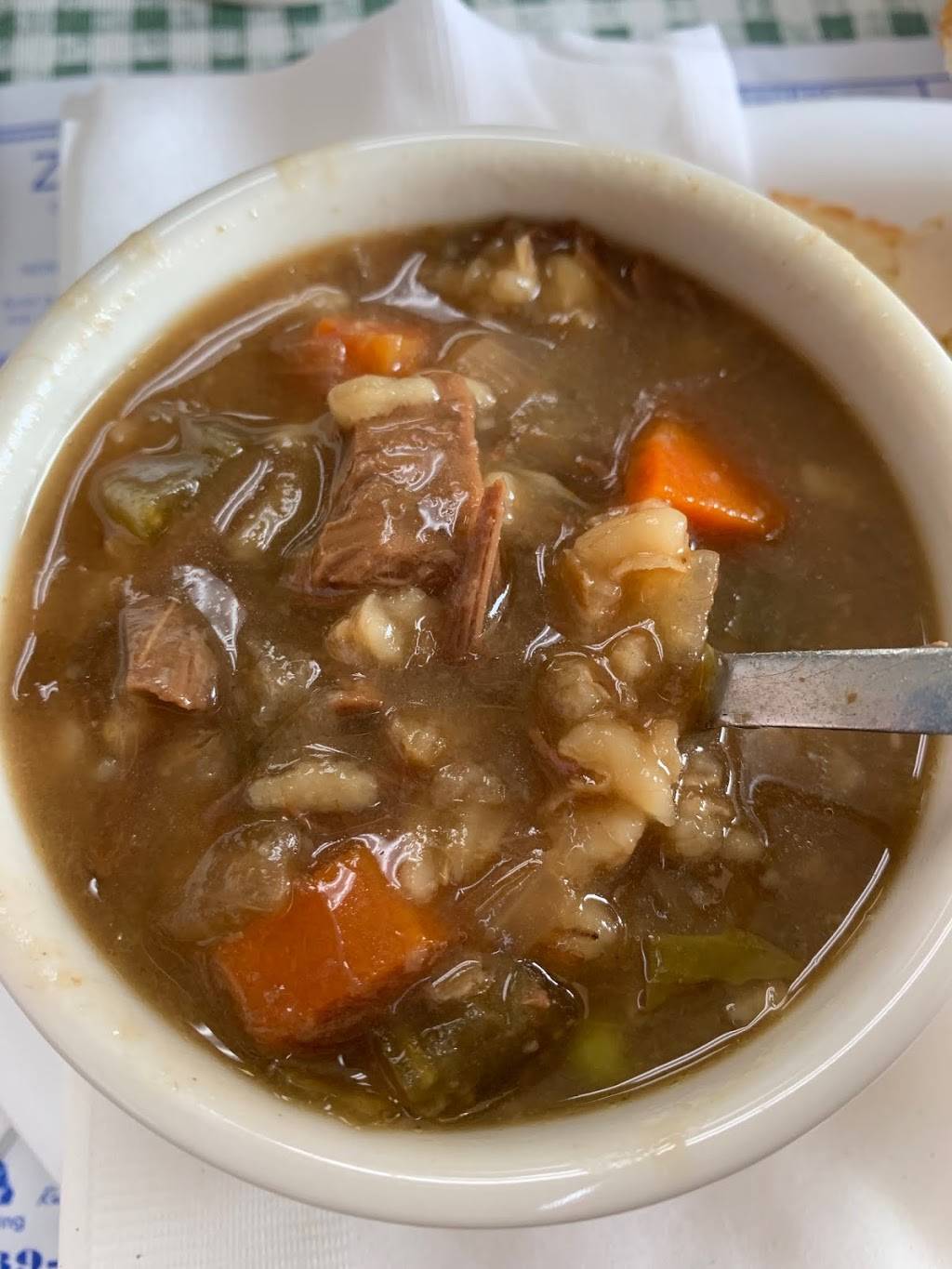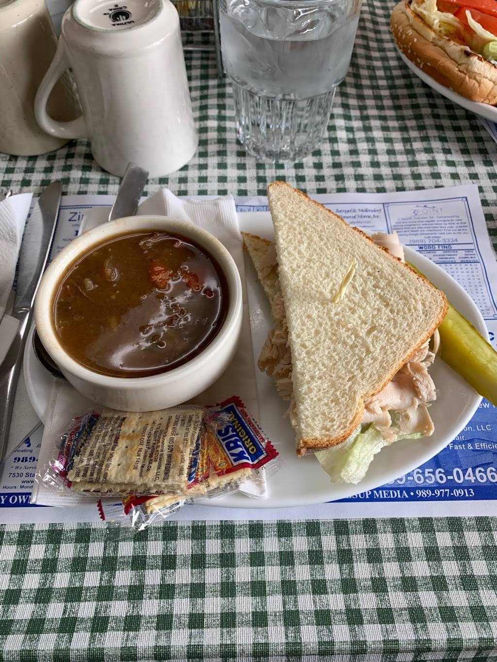 I went here with my wife and daughter for lunch on a brisk yet sunny Saturday in January. It wasn't very busy but the bakery counter was well stocked -- the muffins are very good (we had cranberry). On a whim, I ordered half a turkey sandwich and a cup of homemade Beef Barley soup. It was not a mistake: delicious and affordable ($4.80). Any cafe with actual homemade soups shows a lot of character. Many restaurants in the area simply offer whatever GFS (Gordon Food Service) has for delivery. My wife had a cheeseburger with fries that she shared with our daughter -- very good (crispy fries are always appreciated). Will definitely return.