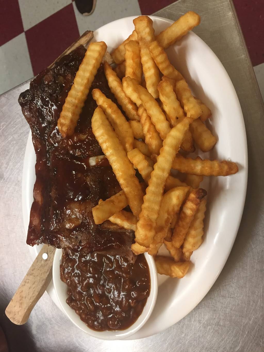 Delicious food. I had the fish basket, fries, coleslaw. Everything was delicious. The decor is mounted deer, and a bear. Rope lights around the bar, and bare tables. Nothing that I wouldn't expect in this area. The food takes a while, but it's great home made food and the servers were very nice.