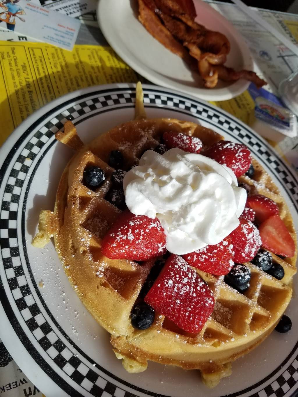 We love this place. Great place to grab breakfast before church on Sunday. fairly priced, great food, great service and good portion sizes. Love the menu and its sense of humor. Only 2 complaints are space, not a lot of room and the hours. Wish they were open longer.