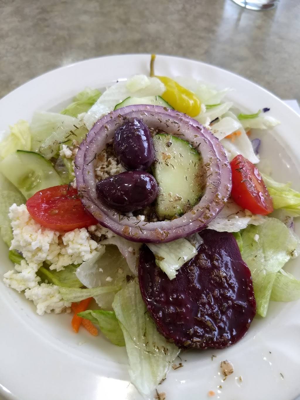 They are super friendly every time I go there. I have only ordered carry out. And I can only speak for their gyros because they're so good! That's all I ever order because I love them so much I want them all the time! The Greek salad that comes with is awesome. Its always fresh, tasty ingredients. The fries are awesome! I ordered onion rings today and those were awesome! I've had their spanikopita and it's great! I love Theo and Stacy's. It's a great little hometown diner feeling place. You feel like you've stepped into another world when you go in there. Very warm and inviting. And now that I know they are Packers fans, that's one more reason to love them!