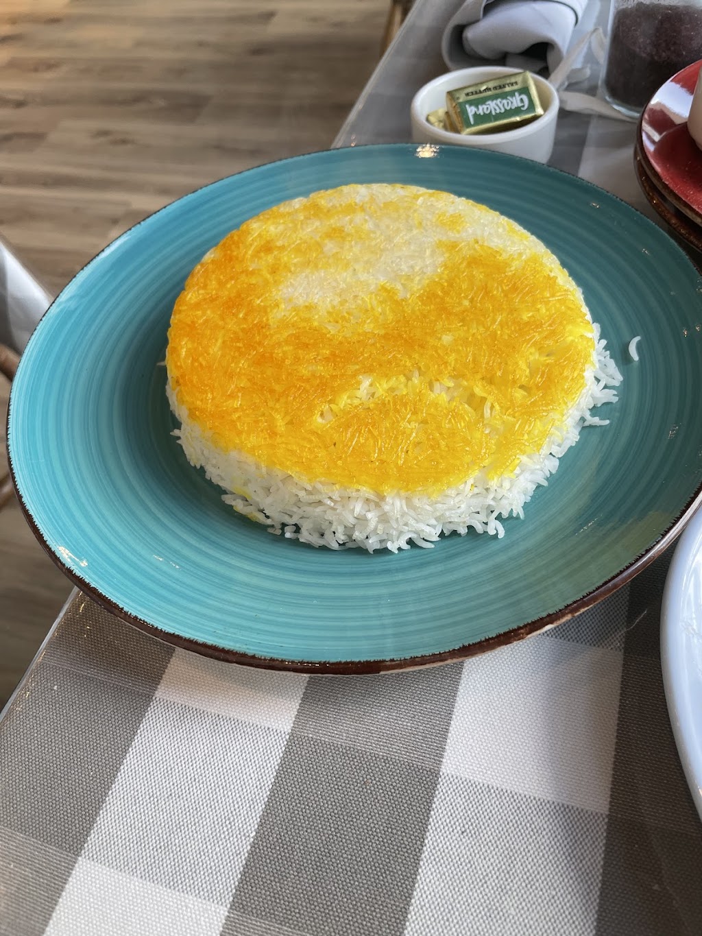 What a beautiful backyard Persian food experience! Delicious tender lamb shank I would return everyday for! Persian tea was served in a delicate double glass. Lovely!