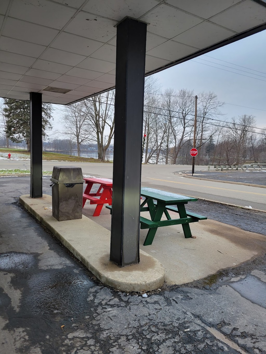 Good pizza quick. As already mentioned maps has the location wrong location it is in the drive thru of the former bank next to Jerry's market. The pizza is done quickly and you get $1 discount if you get it cold and bake at home. The crust is think and crunchy. The toppings were plentiful. The box is a bit odd in that the sides don't fold down, so it has wings.