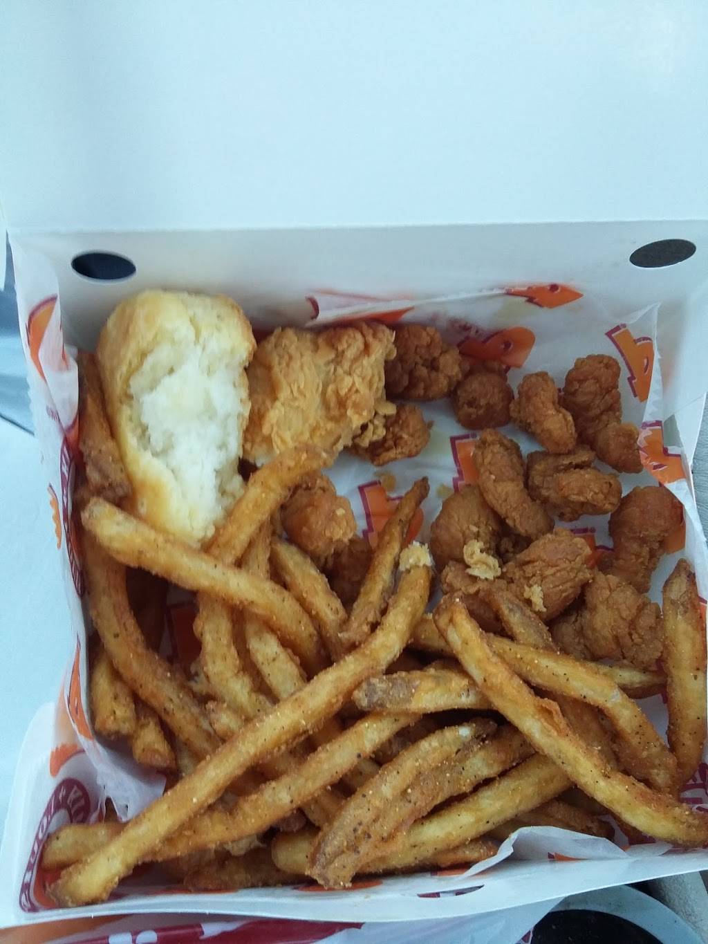 Chicken strips were thin and dry, the sides were good. The biscuit was the best I've had in a while. I was disappointed with the chicken especially since I've had better at Popeyes. My first visit to this particular store.