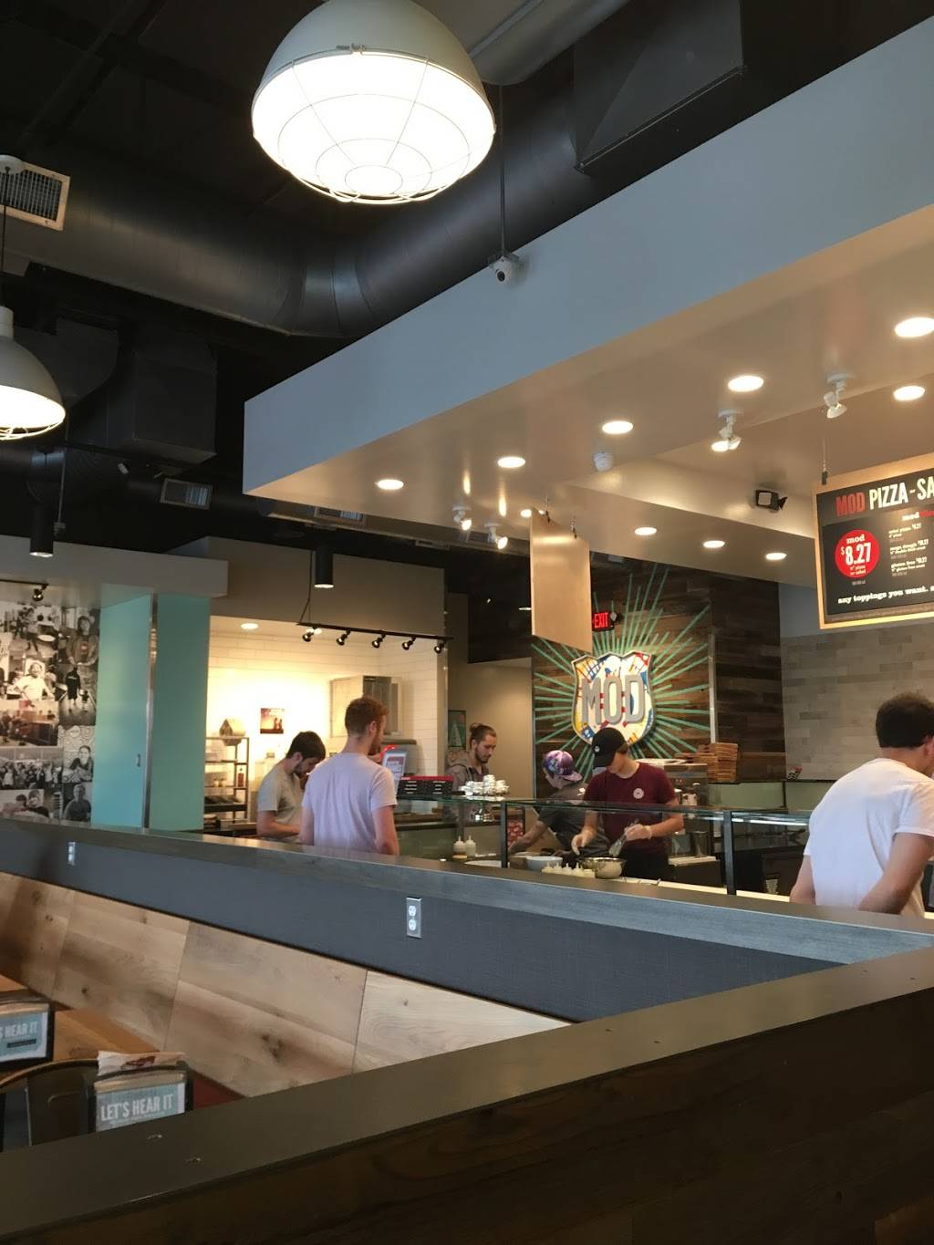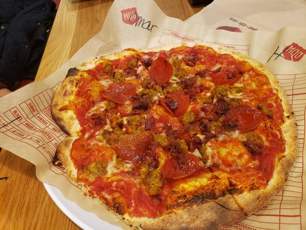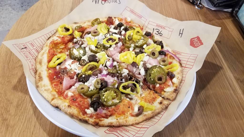 This was our first visit to MOD and it won't be our last. There are more than a few things that make this place unique. You can add unlimited toppings to your pizza at no extra cost. We saw people order a pizza that looked more like a salad for the same price of a cheese MOD. Even if you order a specialty pizza, you can still add toppings if you want. Next, your pizza is done in just a couple minutes. I've waited longer for my food at a McDonald's. Finally, the staff was awesome. When they learned it was our first time there, they were almost excited to tell us how it worked and what we could do. It was a great experience at a clean, well cared for restaurant. Our kids look forward to coming back and so do we!
