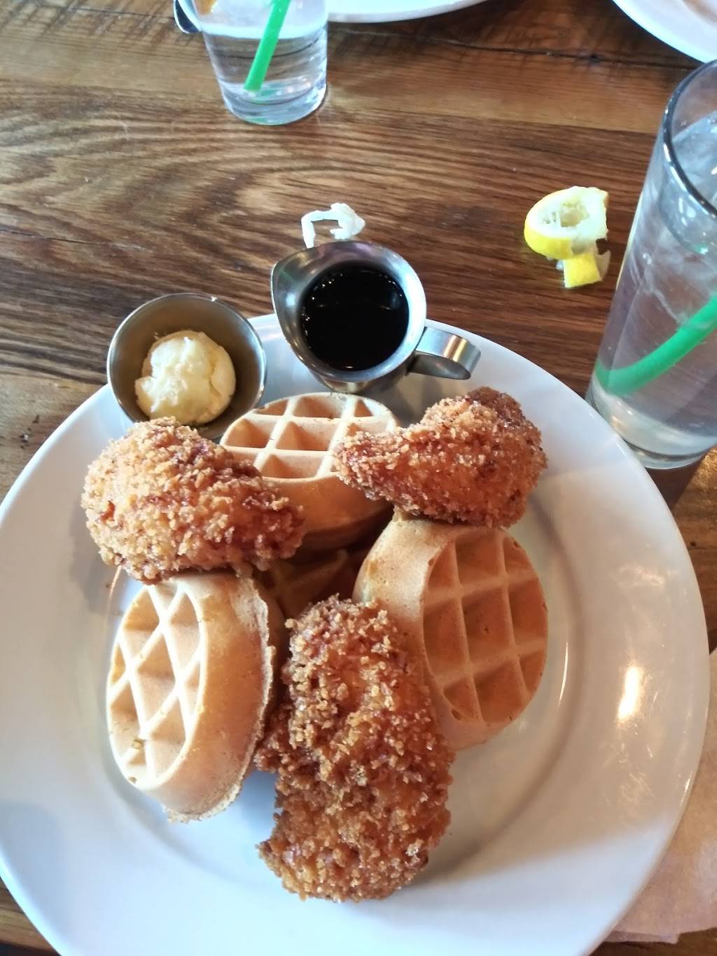 Service was great, multiple waitresses asked if we would like our coffee topped off. I ordered the French toast with banana caramel and walnut, which was delicious but very rich and sweet. Over all a great atmosphere and the food never disappoints. Would recommend.
