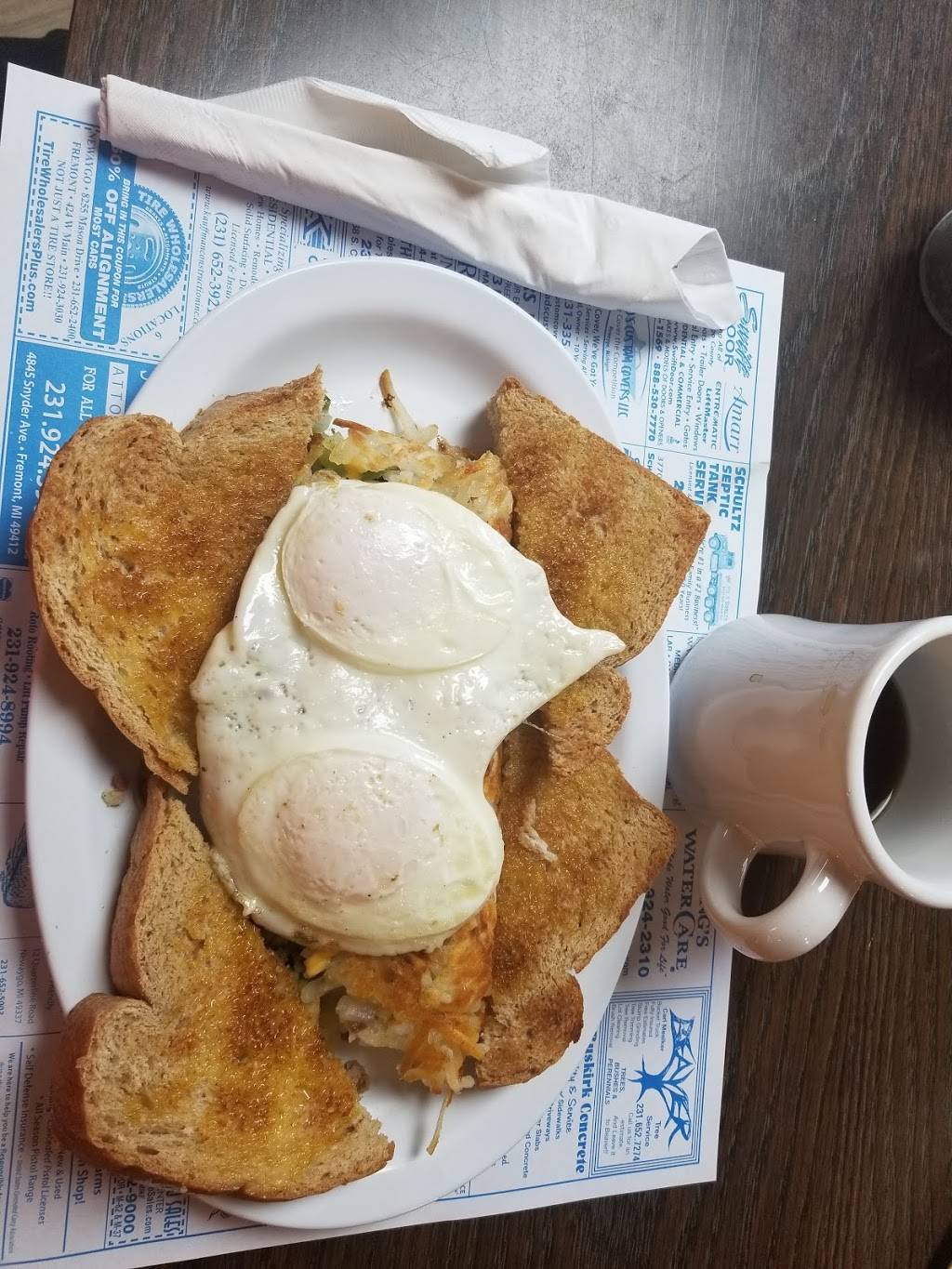 This is my wife and my favorite breakfast place ever. Its clean, including the bathroom. It has a very friendly staff and owner and we feel at home when we are there. The food is absolutely delicious. The serving sizes are big and you definitely get your money's worth. Best coffee in town. I recommend this place to anyone and everyone.